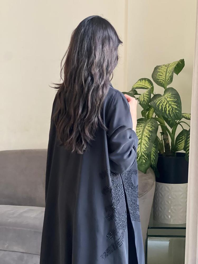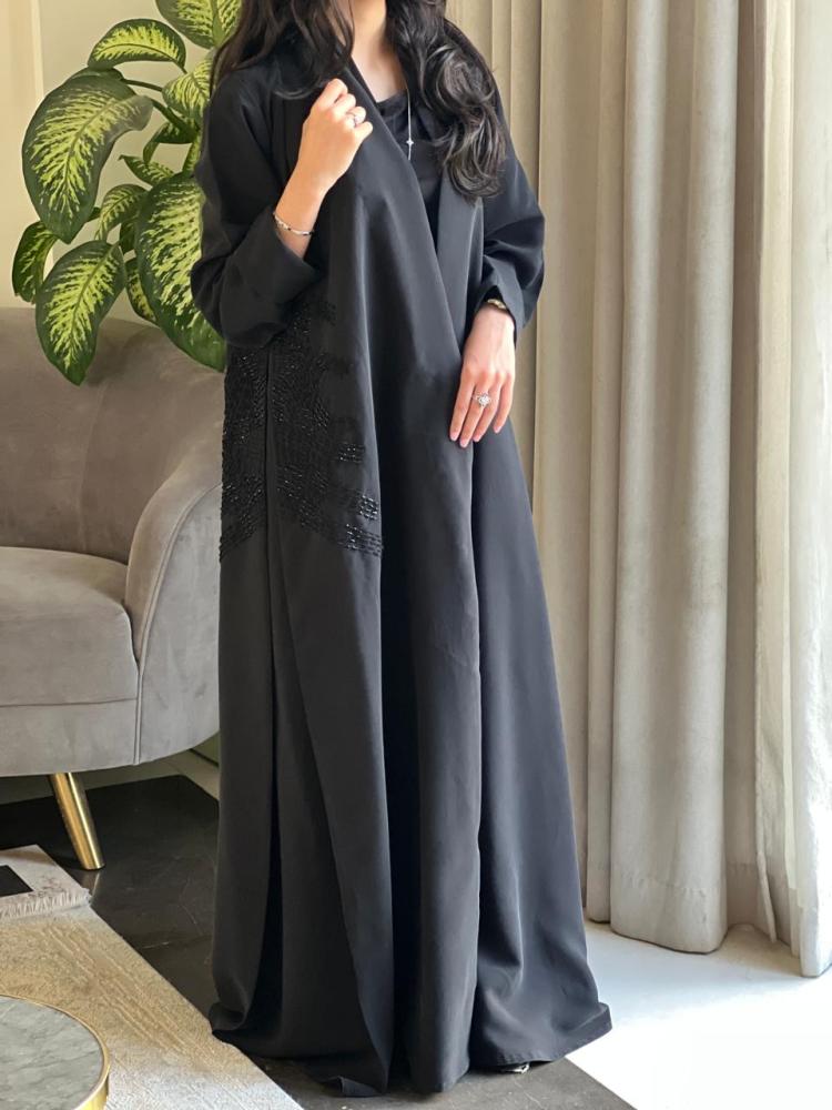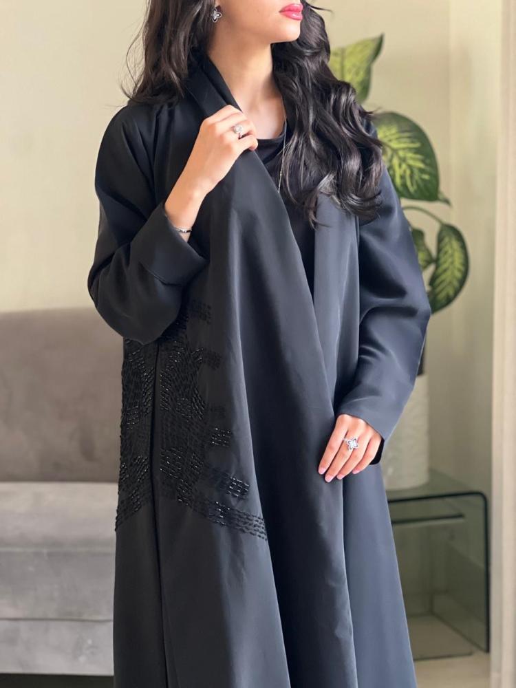 عباية مميزة القماش تفته اسود وعلى الأكما...
