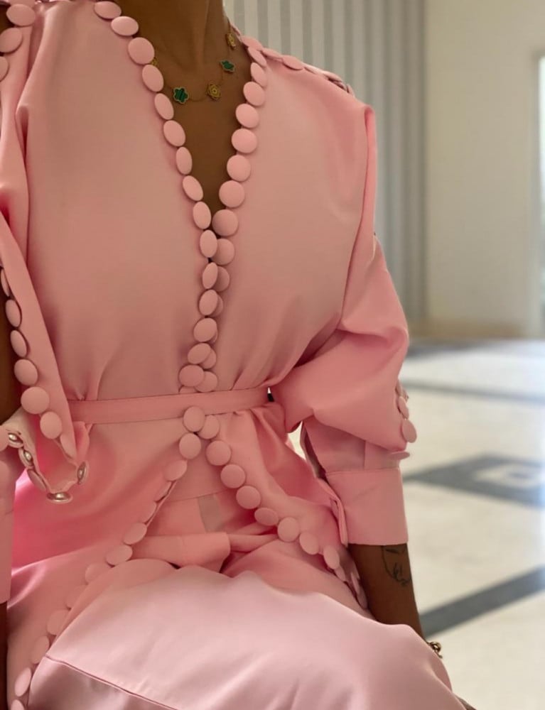 بدلة مميزة وفاخرة بتصميم عصري القماش تفته وردي