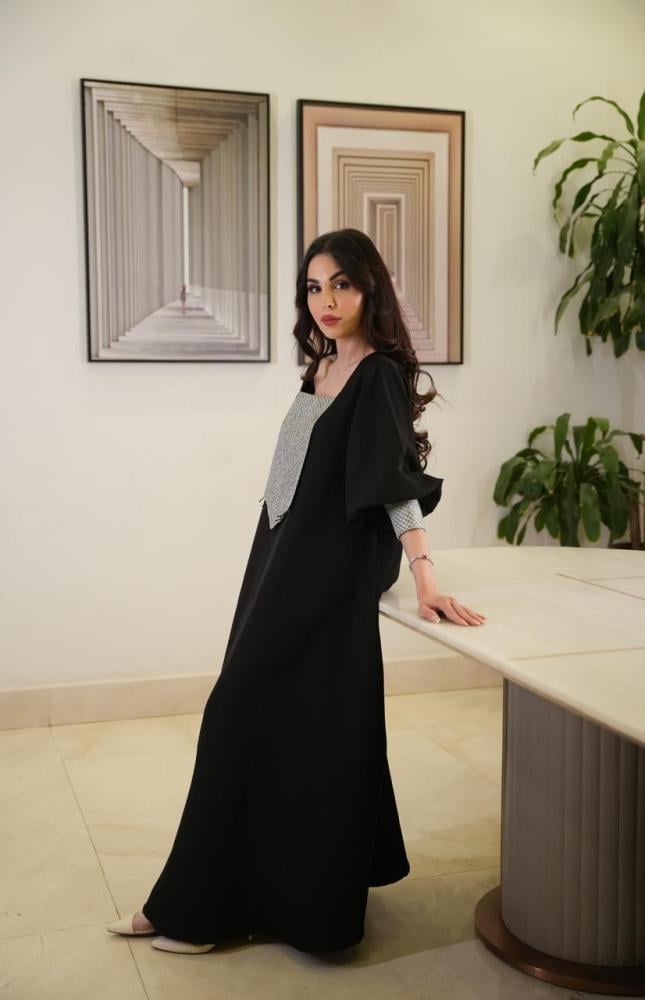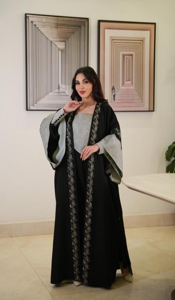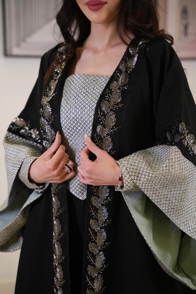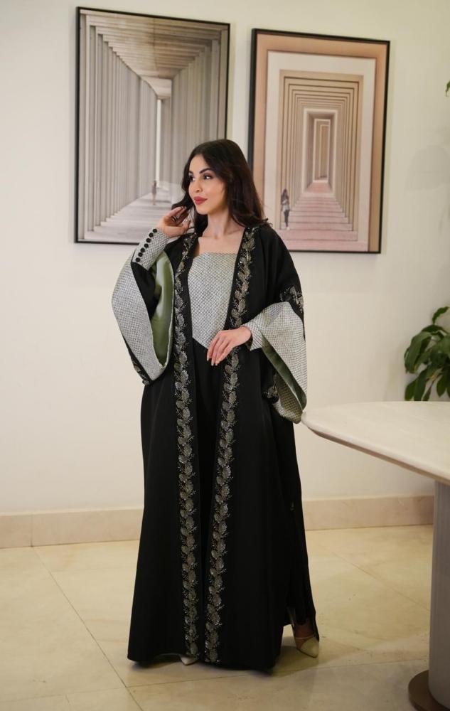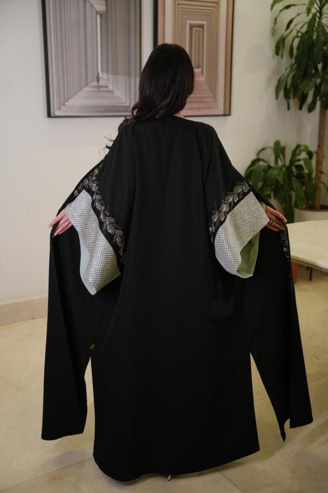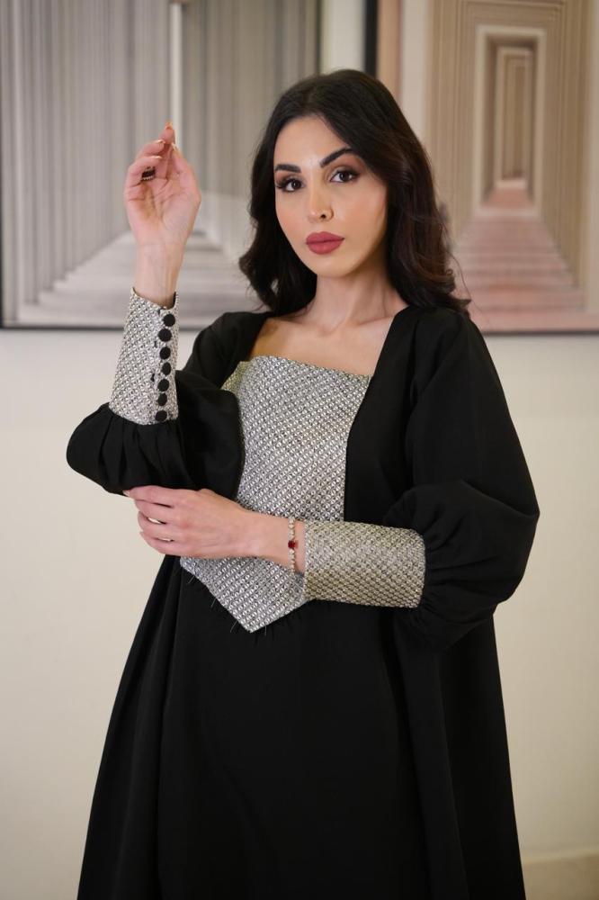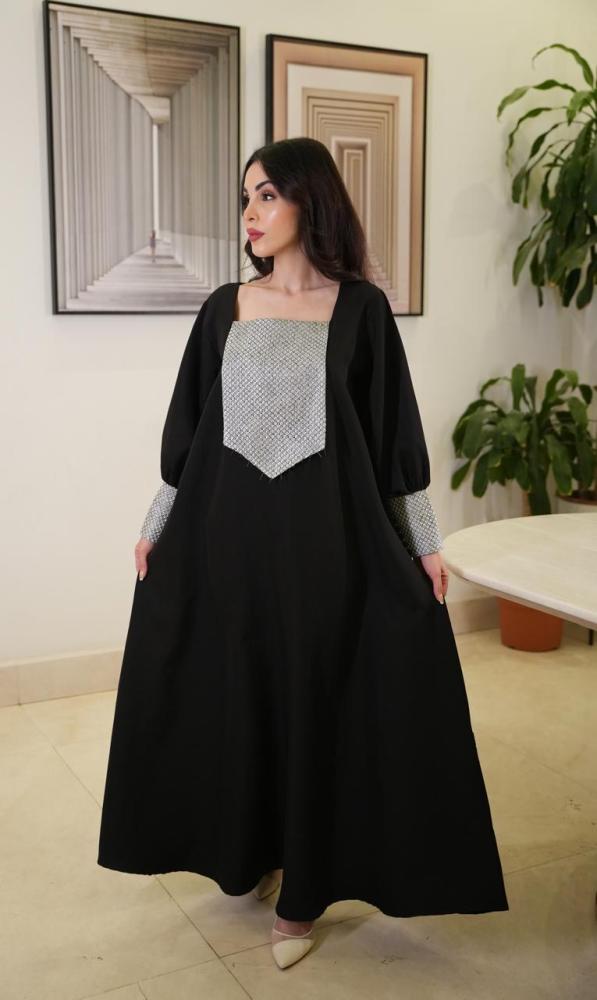عباية صيفية باردة القماش لنن اسود والأكم...