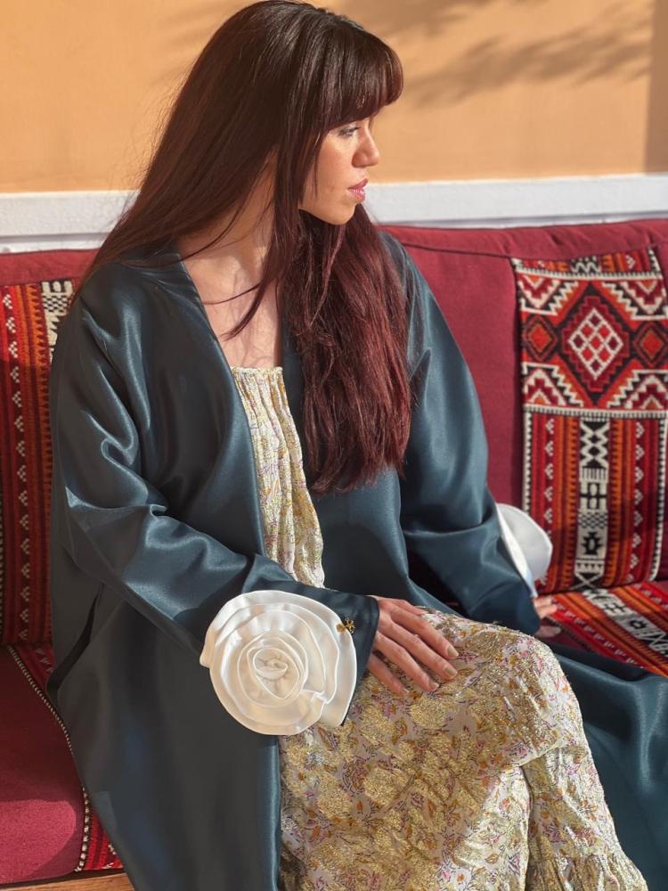 فستان 3 قطع عباية حرير مغسول اخضر وفستان...