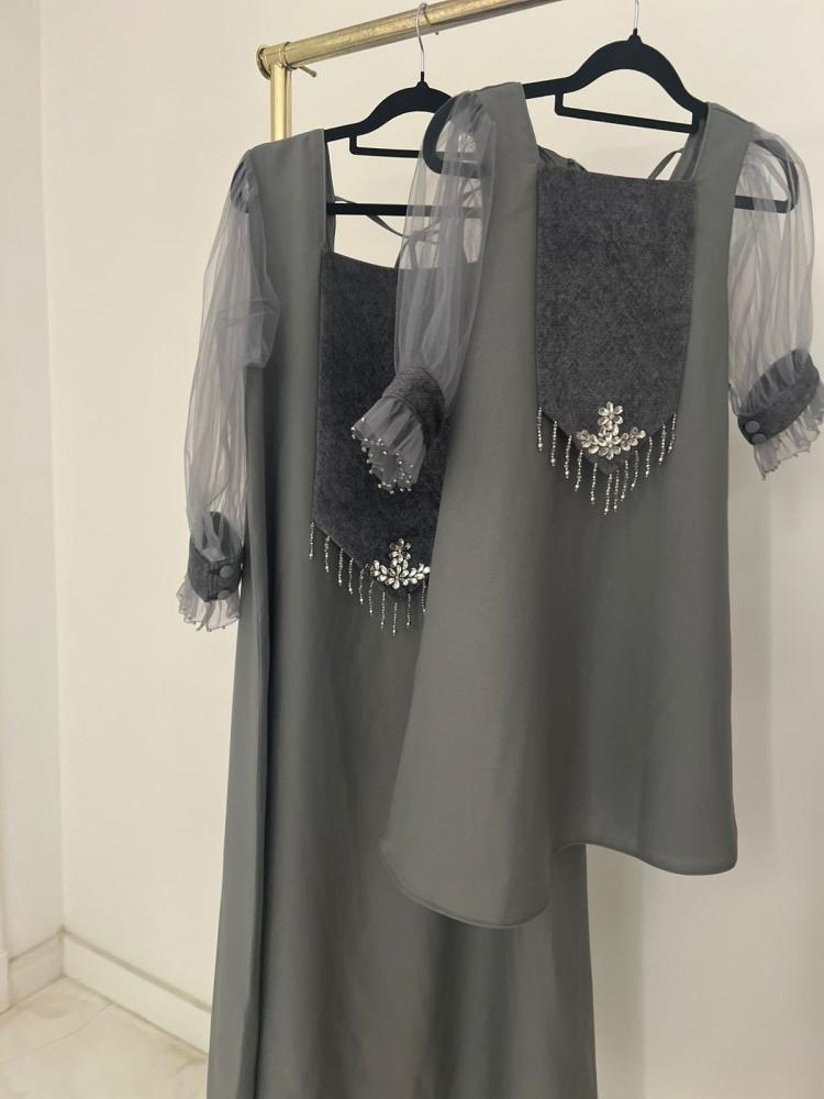 عباية صيفية مميزة اللون رمادي فاتح مع سك...