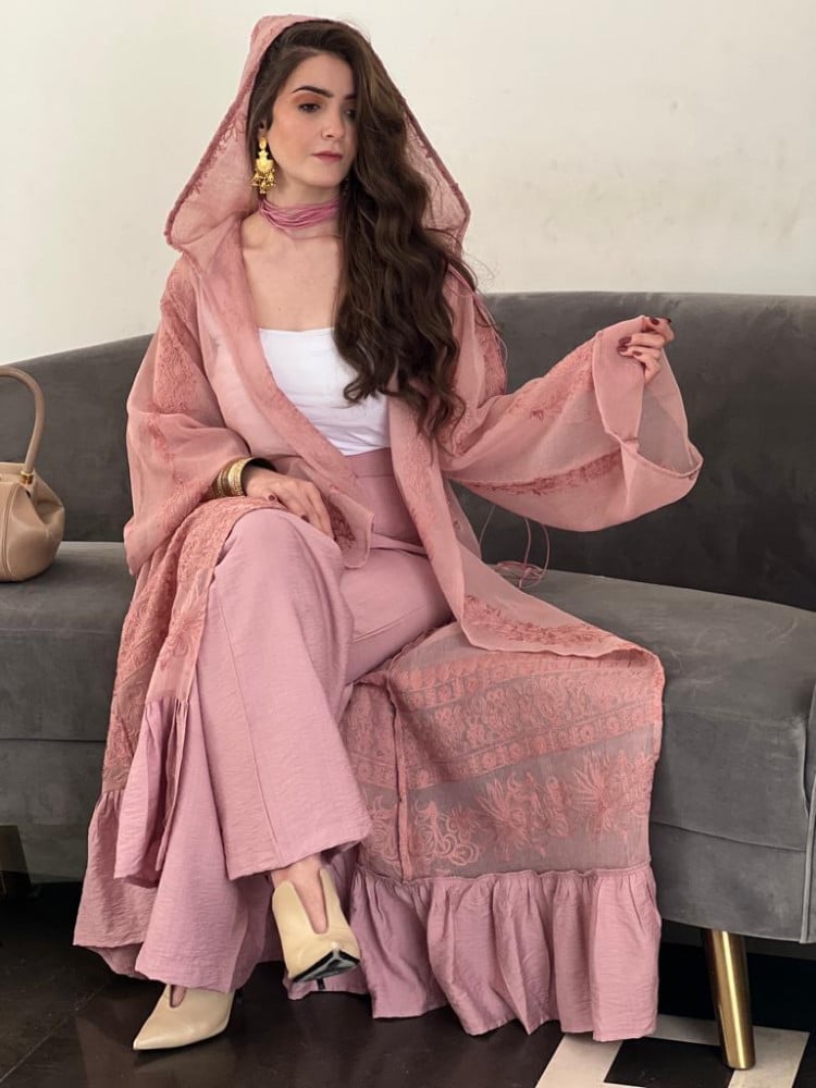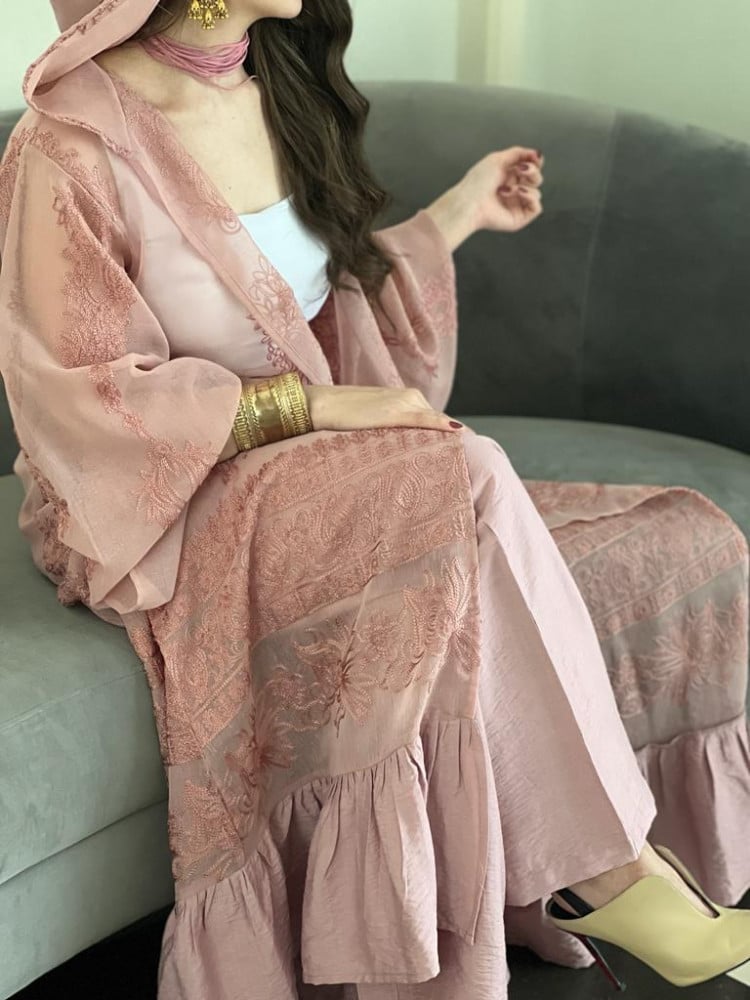 عباية فاخرة القماش تفته وردي و سكري مع ش...