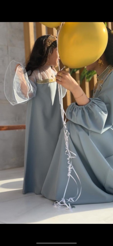 جلابية فاخرة القماش حرير سماوي مع شك ذهبي