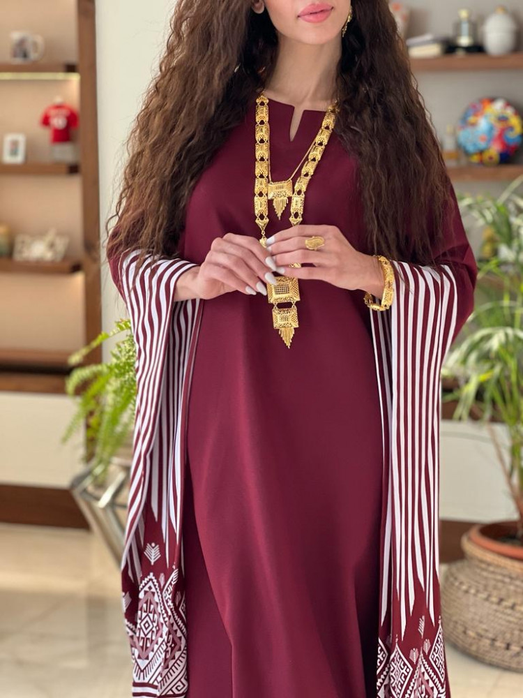 جلابية مميزة اللون عنابي والأكمام مقلم عنابي