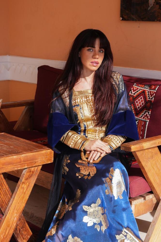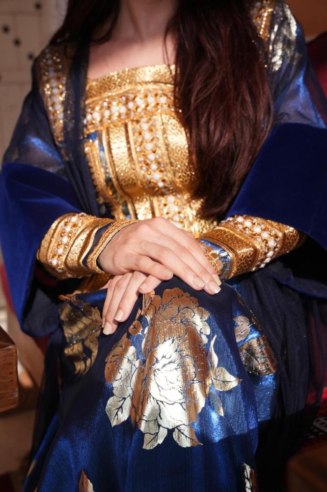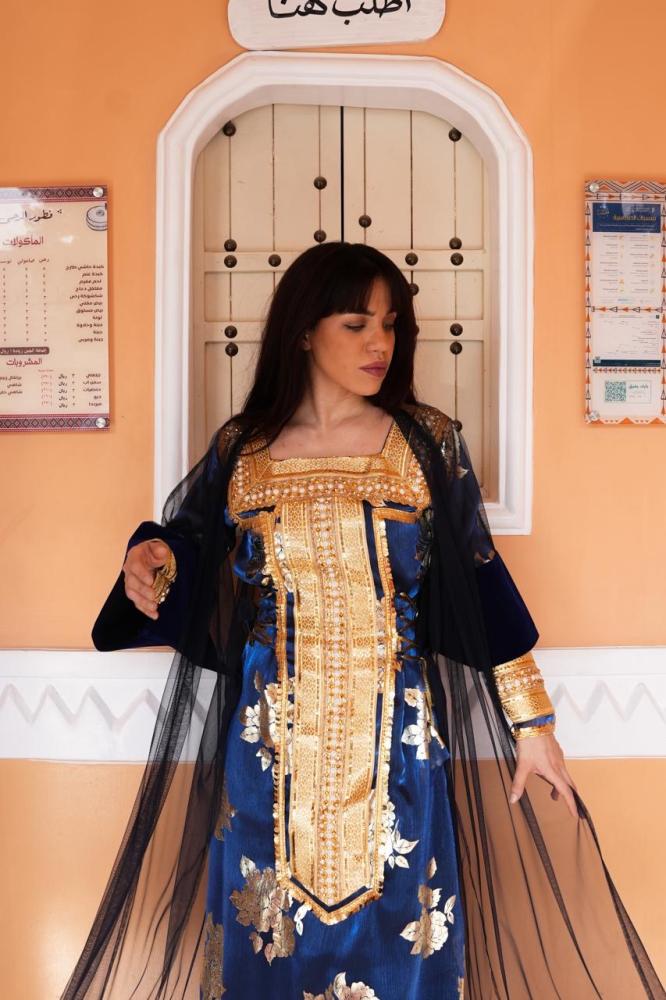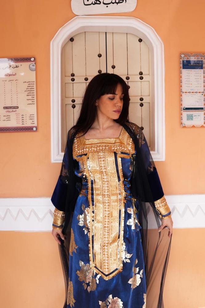 طقم لنن البنطلون كحلي مطرز سكري والقميص...