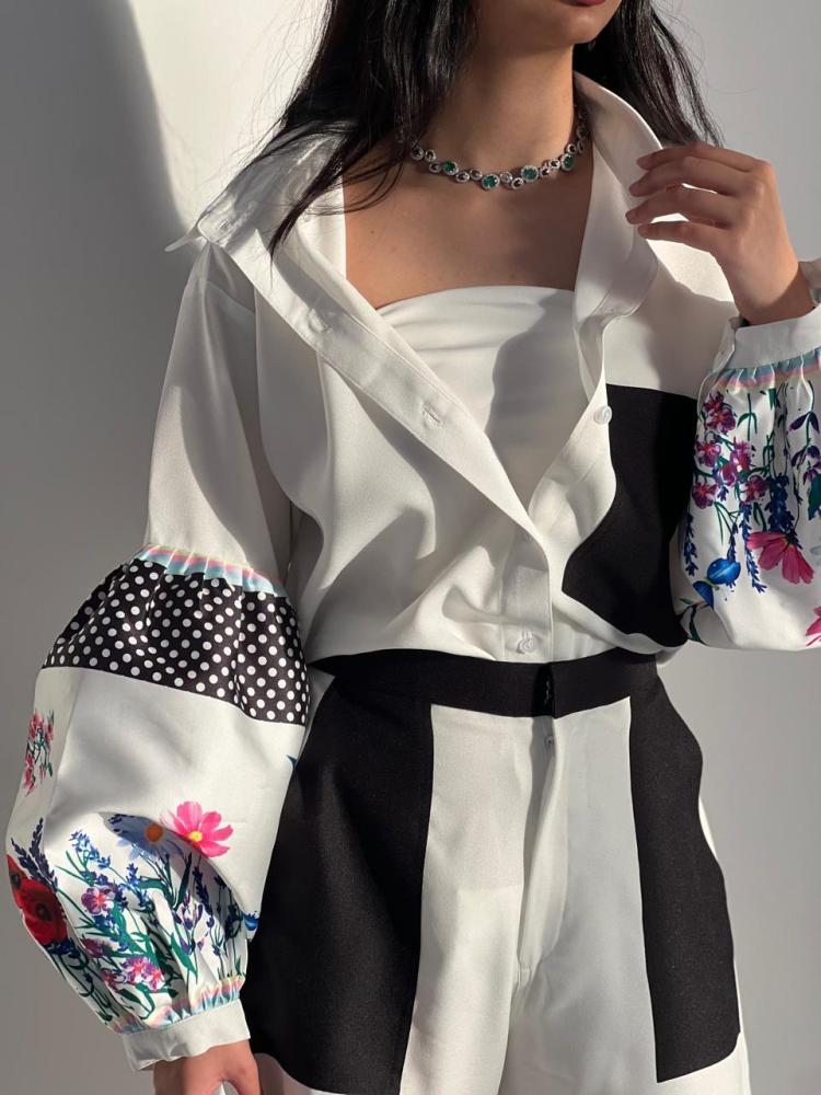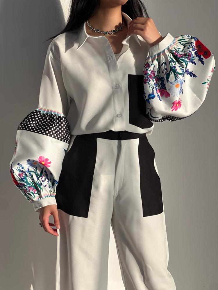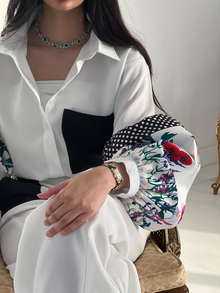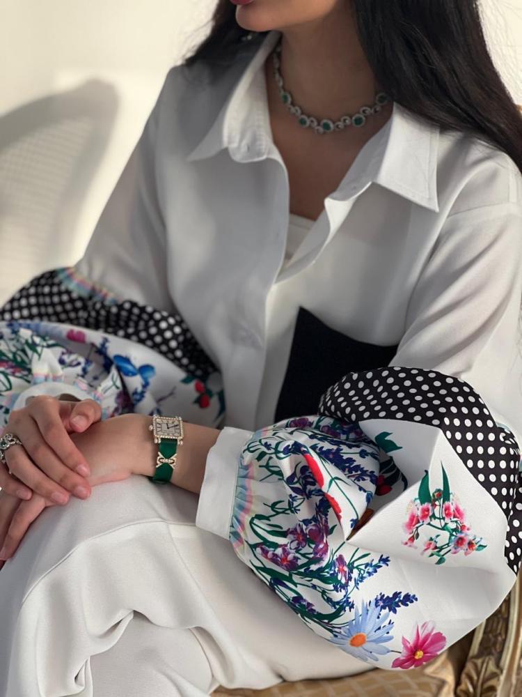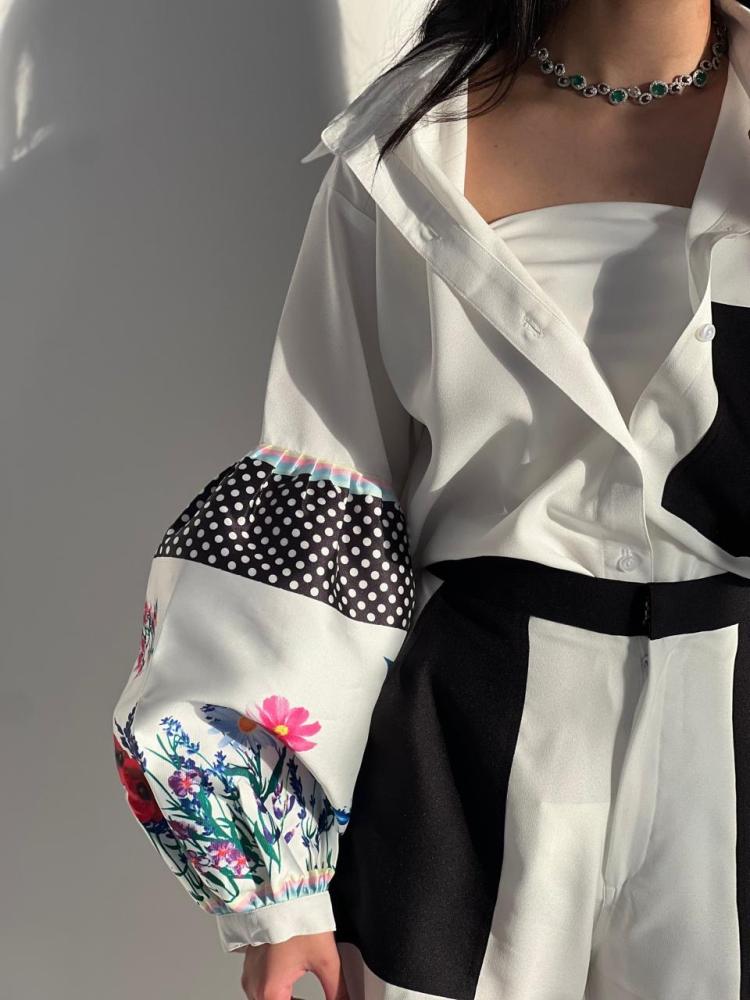 طقم سكري مع اسود ووردي القميص كريب حرير والبنطلون تففته