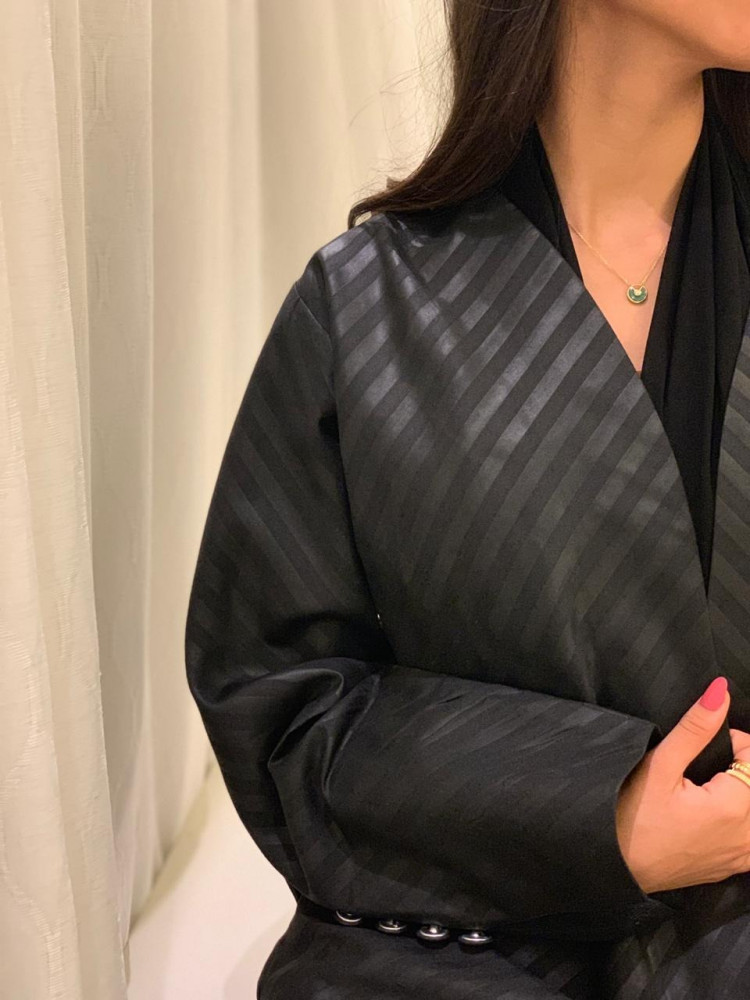 عباية فاخرة القماش كريب حرير اسود مع شك...