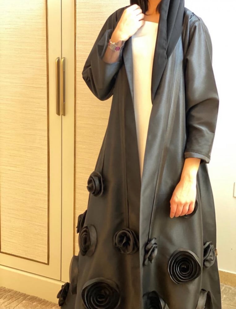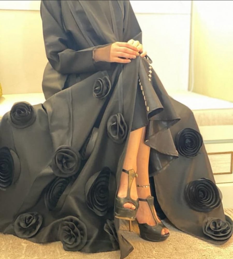 عباية مميزة قصه كلوش القماش كريب حرير اس...