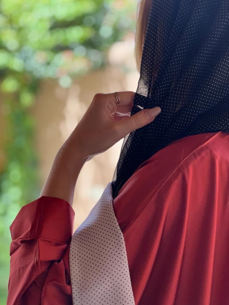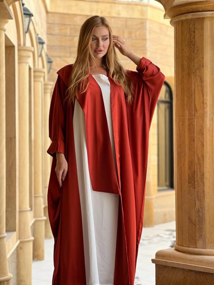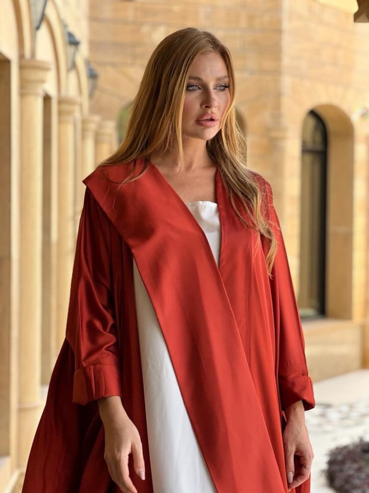 عباية بشت صيفية باردة القماش القماش كريب حرير اللون احمر محروق