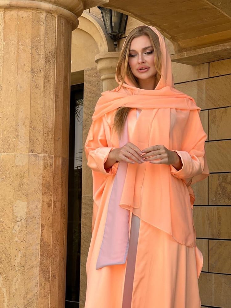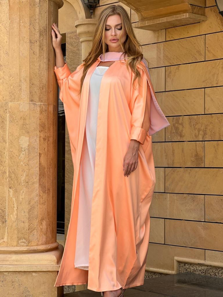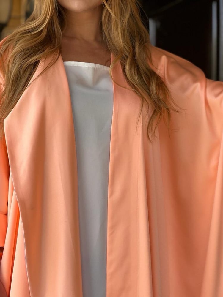 عباية بشت صيفية باردة القماش كريب حرير اللون مشمشي