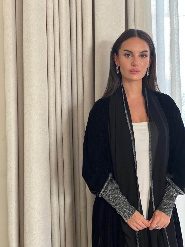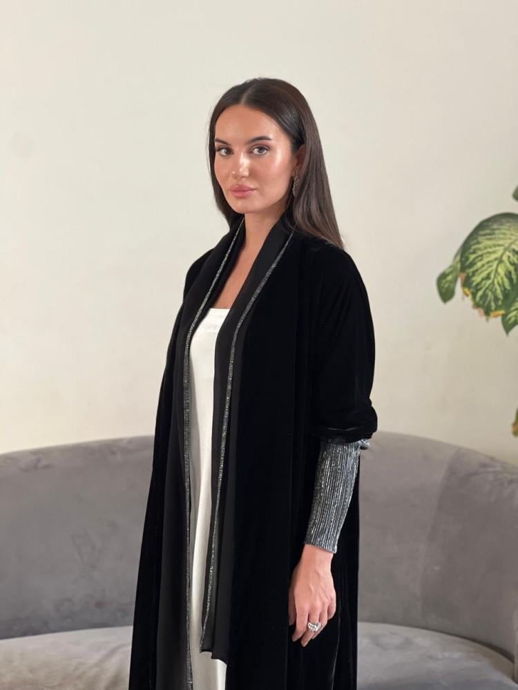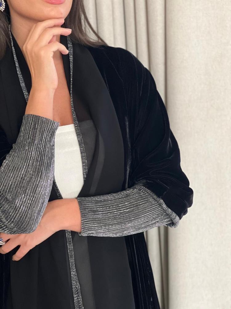 عباية راقية شامواه أسود والاكمام استريتش لمعة