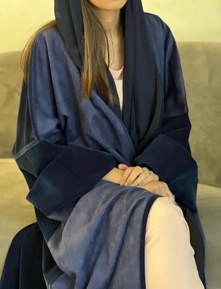 عباية شتوية القماش شامواة كحلي والاكمام مخمل كحلي