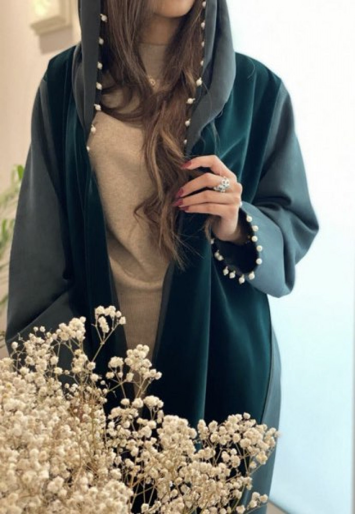 عباية شتوية بشامواه ومخمل زيتي وشك لولو سكري