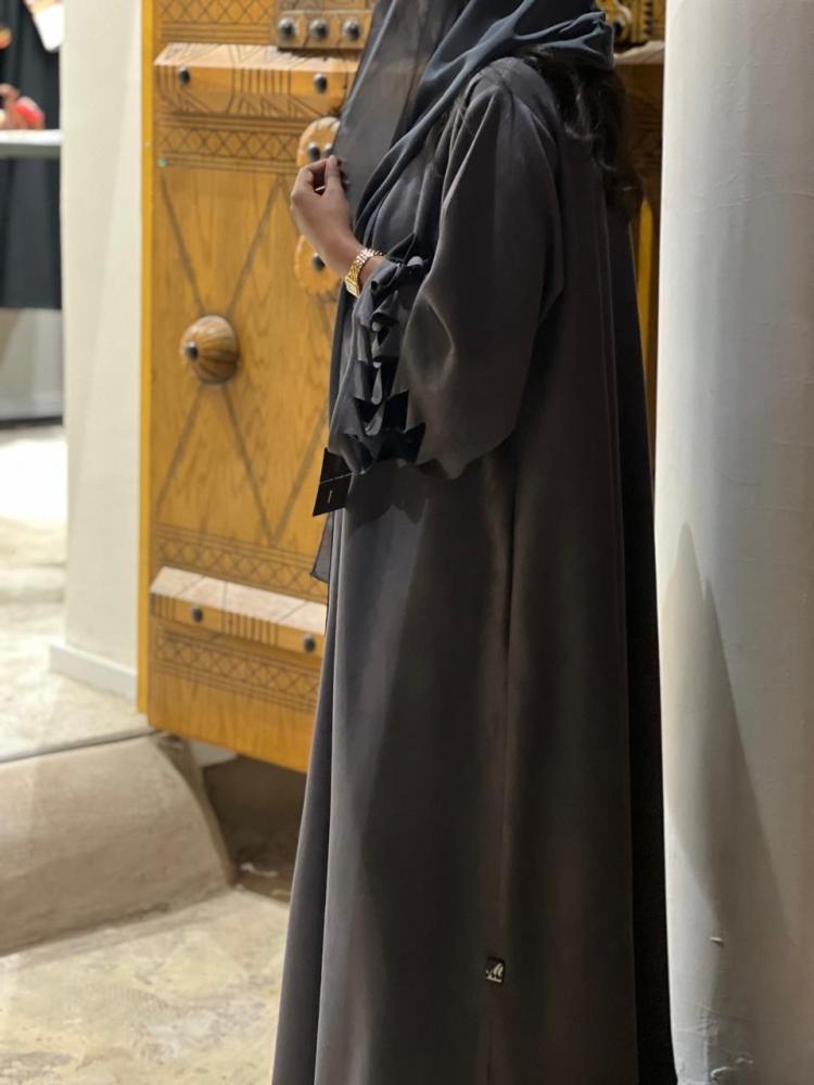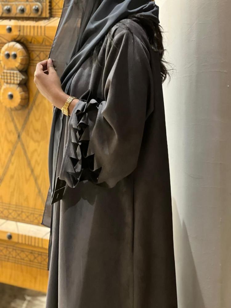 عباية عملية وخفيفه كريب بني واكمام سلاسل