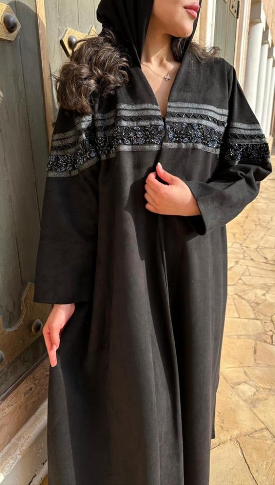 عباية شتوية فاخرة القماش شامواة اسود مع شك