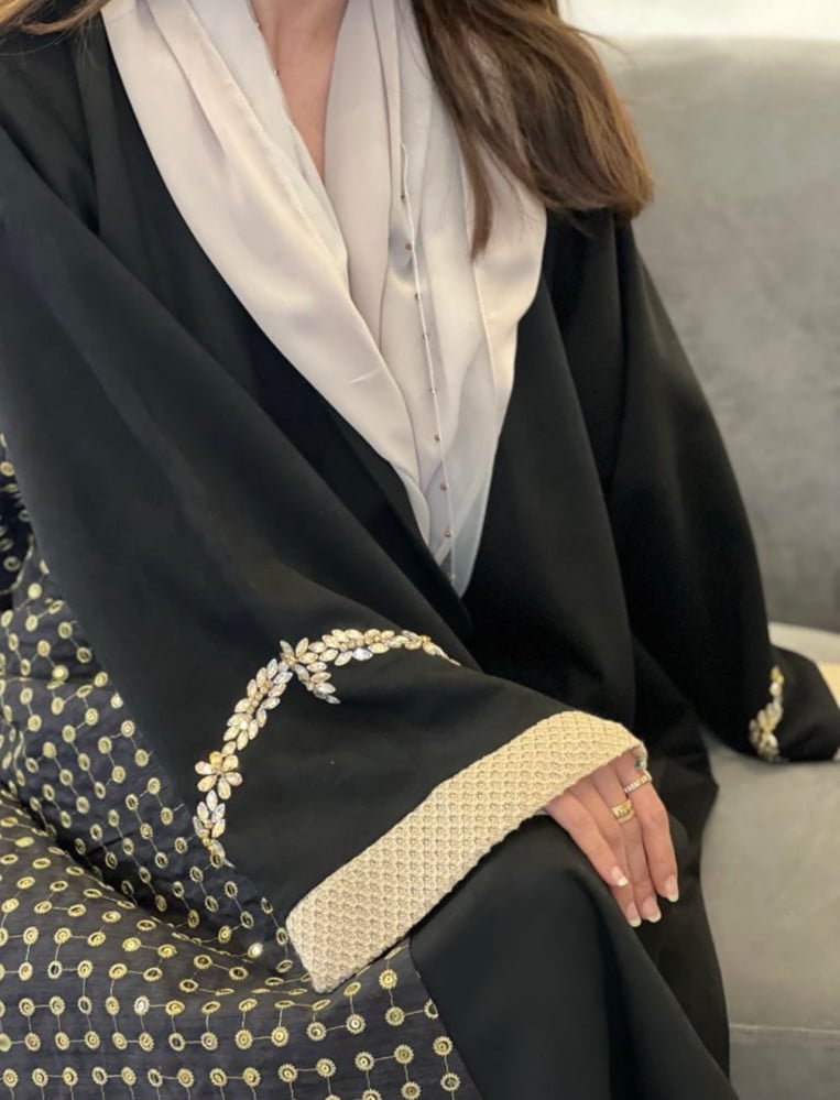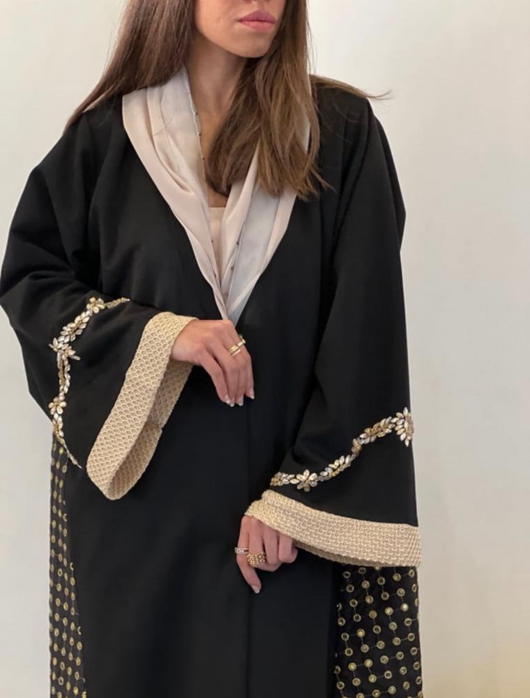 عباية مميزة اللون اسود مع ورد شالكي