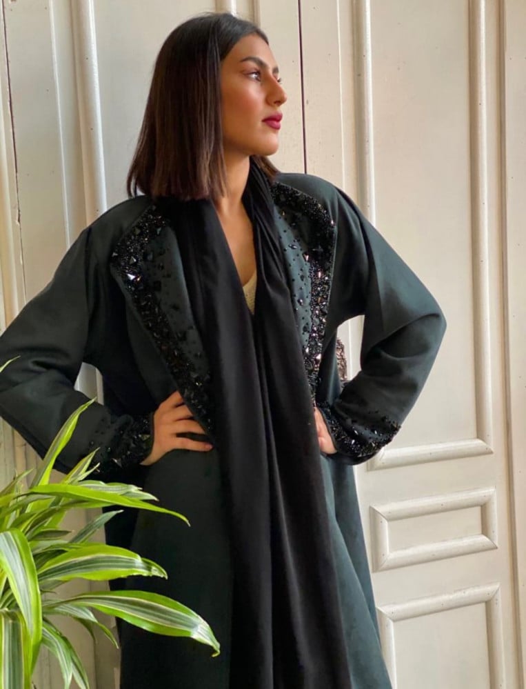 عباية مميزة اللون اسود مع مخمل وتقفل بسح...