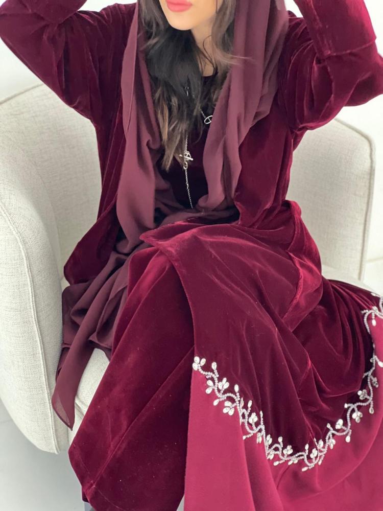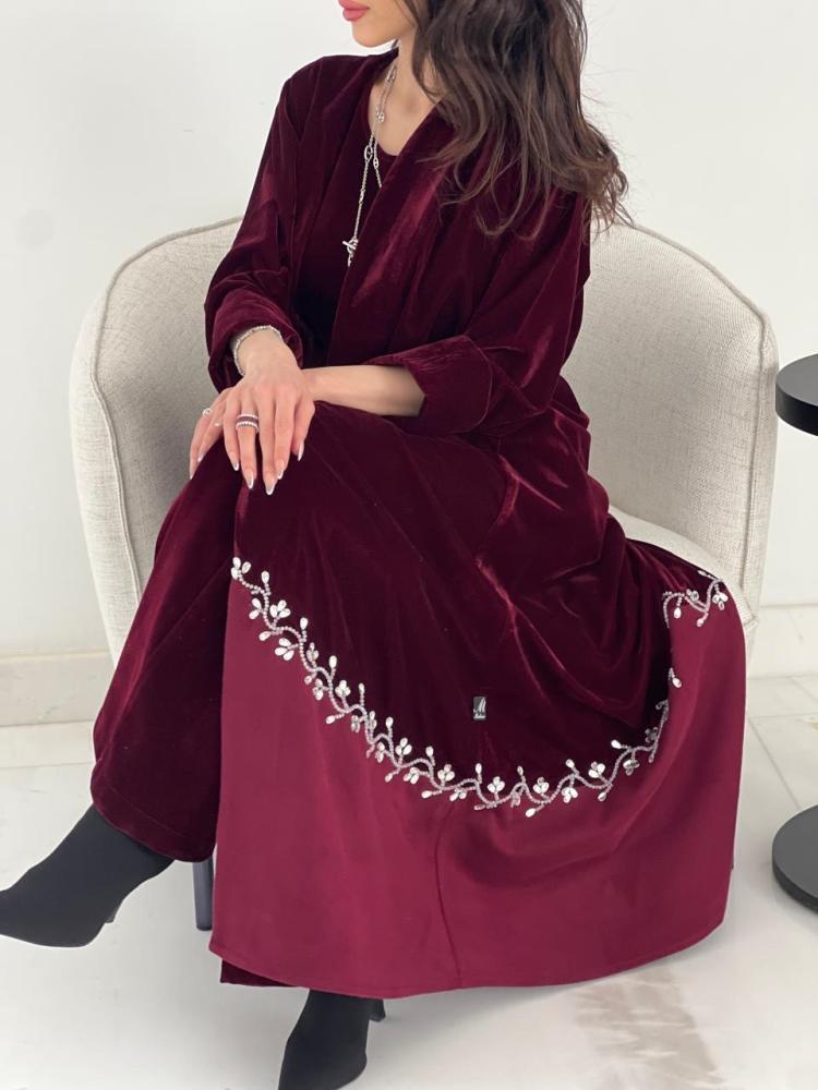 عباية شتوية فاخرة القماش مخمل مع جوخ عنابي