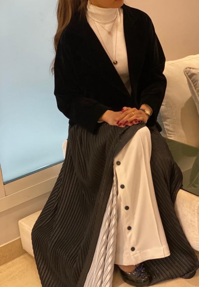عباية شتوية فاخرة مخمل اسود بكسرات اسود
