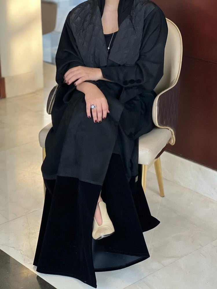 عباية شتوية مميزة القماش شامواة ومخمل اسود