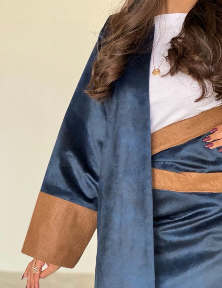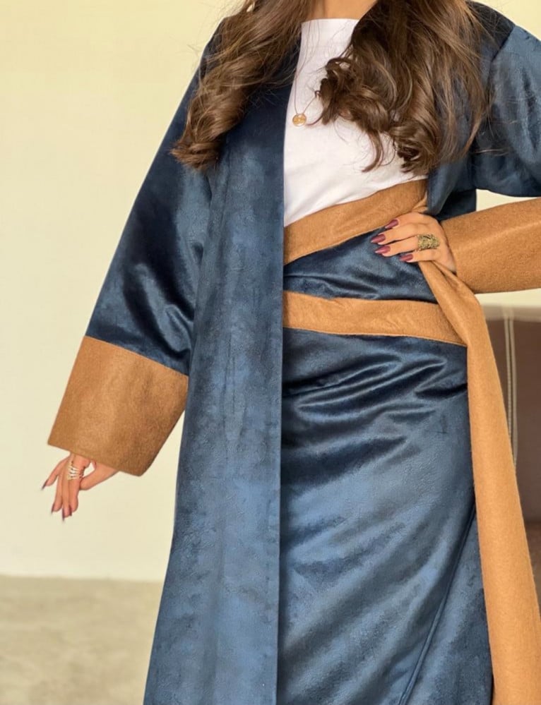 عباية شتوية فاخرة القماش شامواه زيتي وعل...
