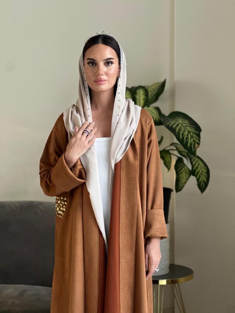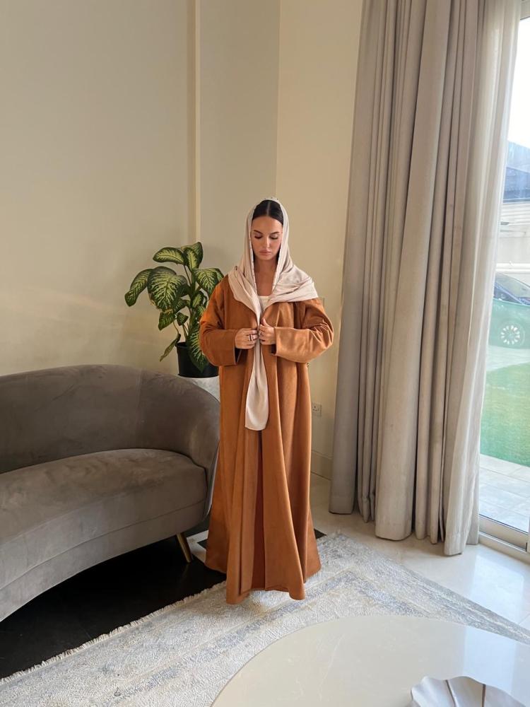 عباية شتوية مميزه بني ومرصعة بالكرستال الفخم