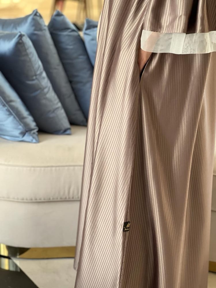 عباية صيفية باردة القماش كريب حرير بني فاتح