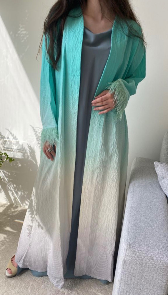 عباية صيفية باردة القماش لنن تيفاني وريش على الاكمام