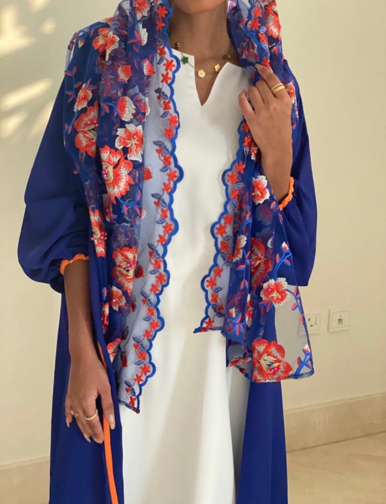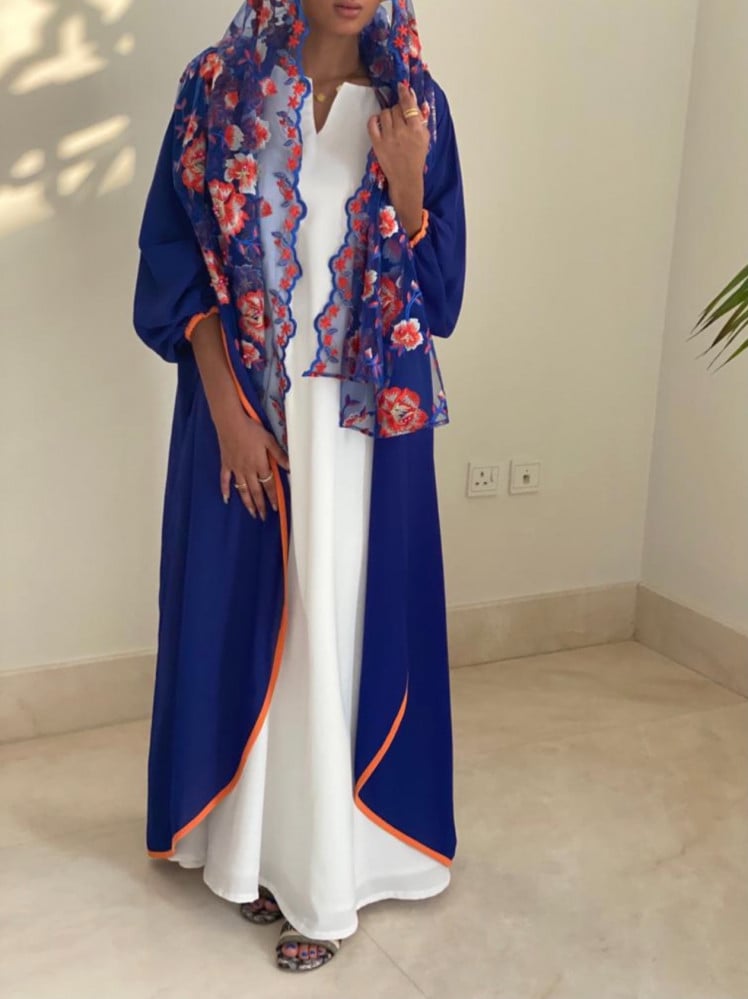 عباية صيفية باردة باللون الازرق مع طرحة مشجرة