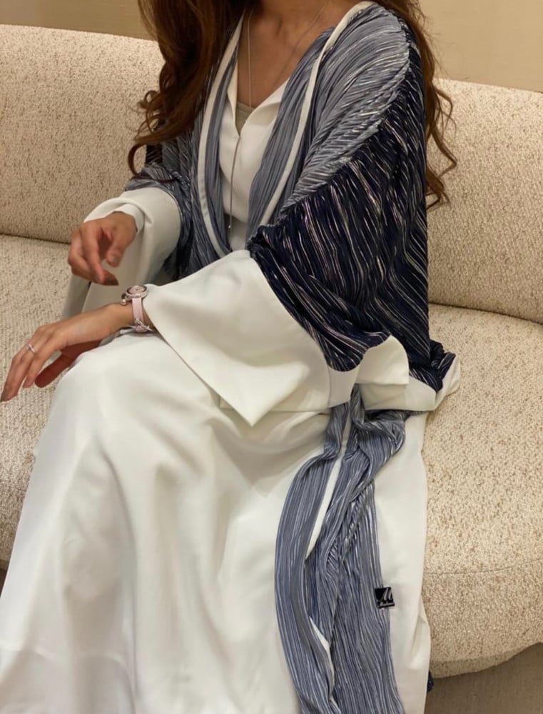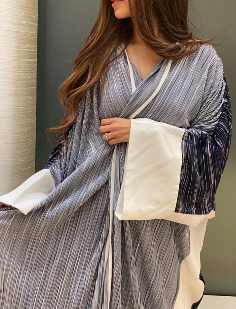 عباية مميزة اللون رمادي مقلم مع شك لولو