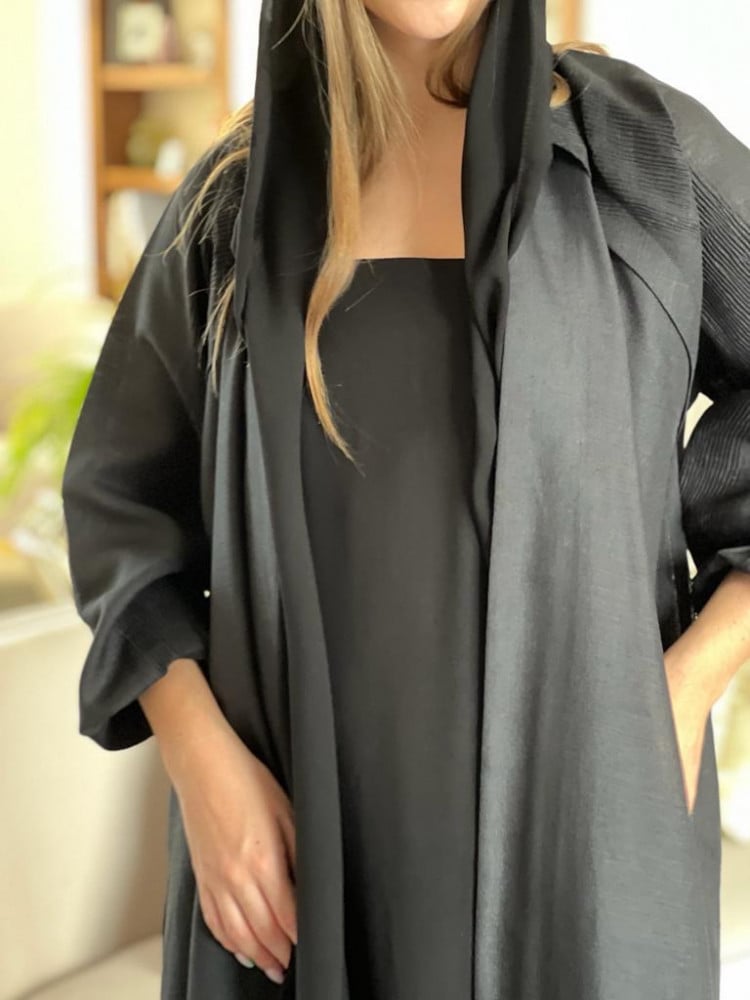 عباية شتوية فاخرة القماش شامواه اسود وعل...