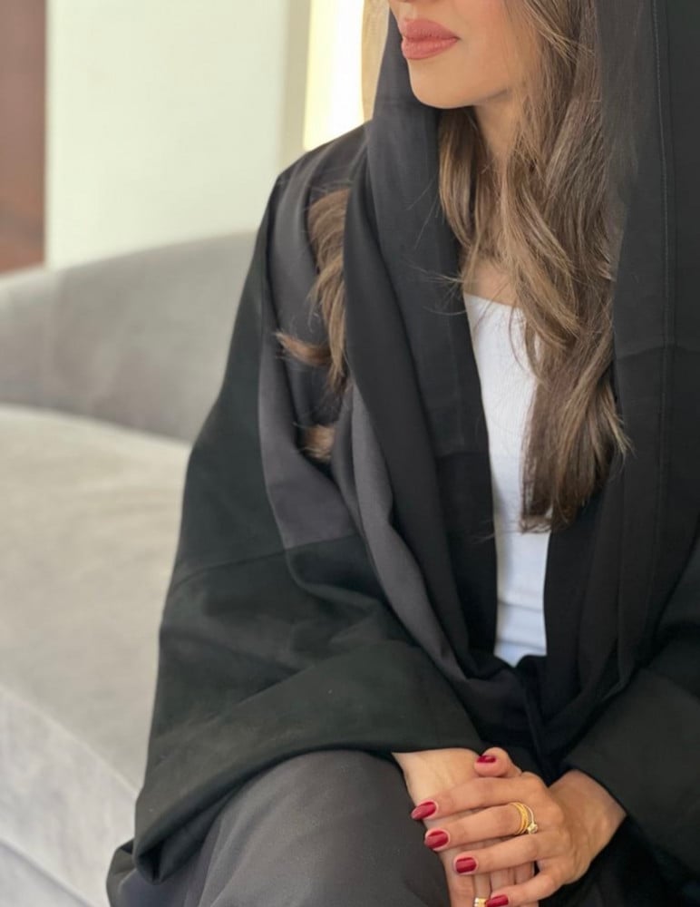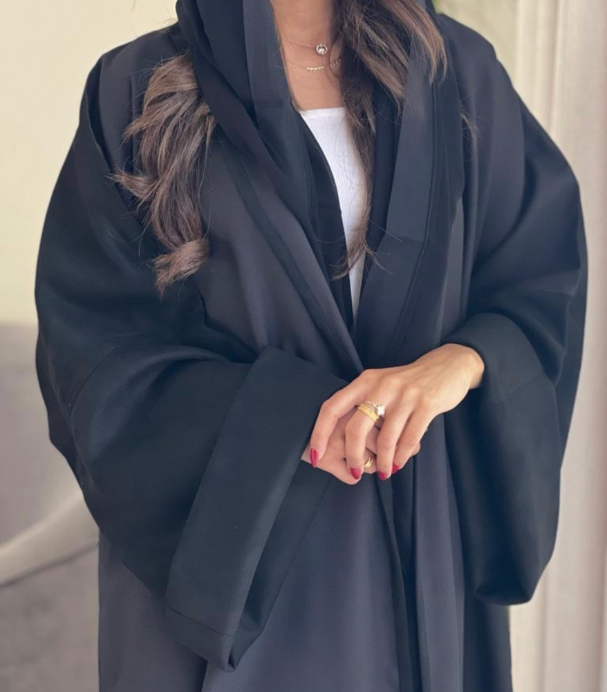 عباية عملية اللون اسود والأكمام شامواة اسود