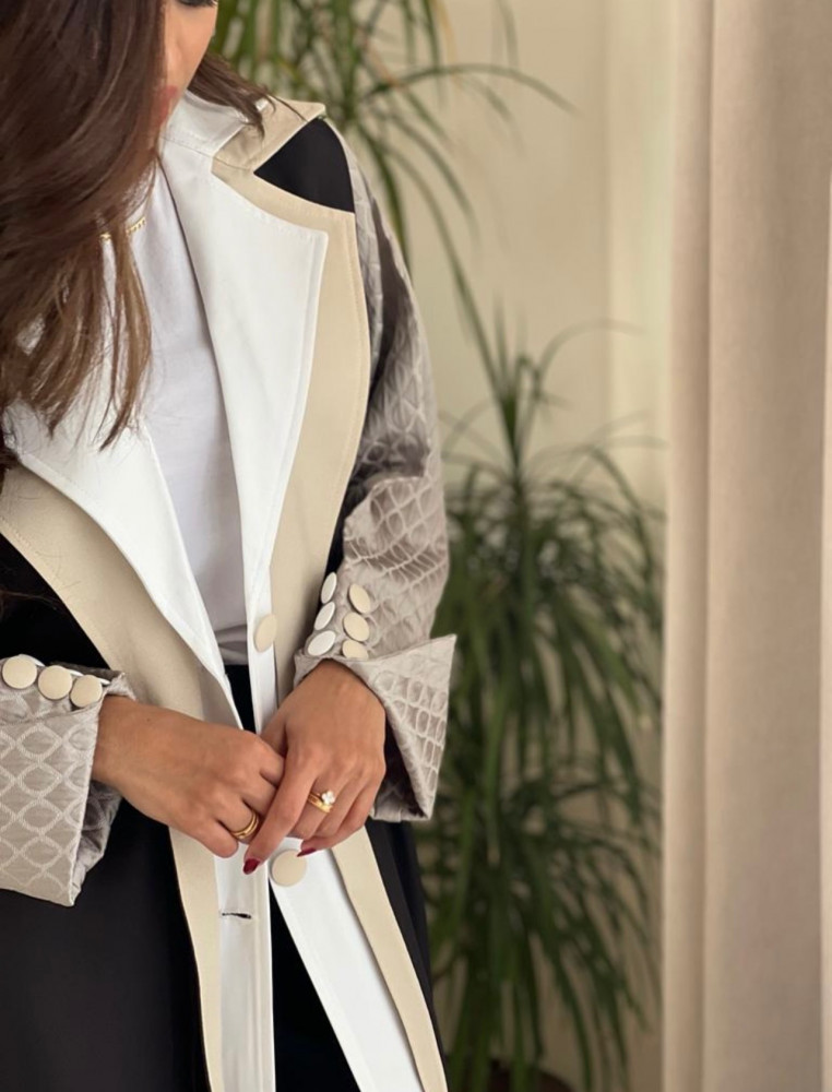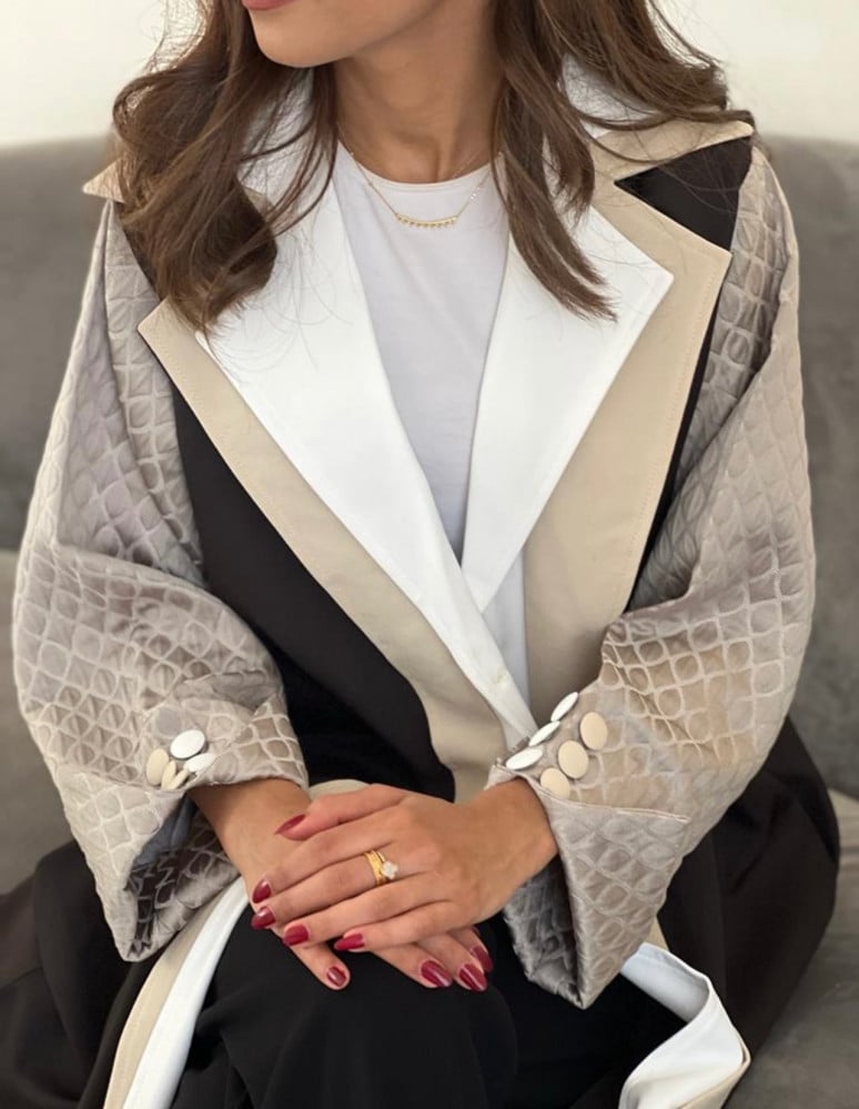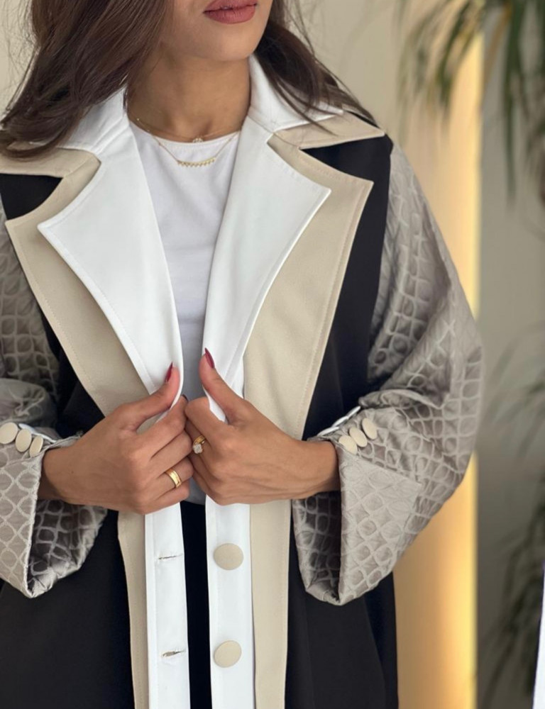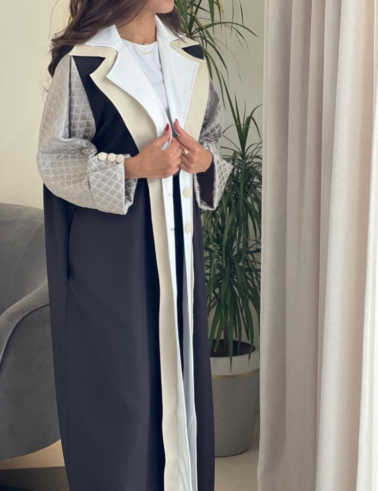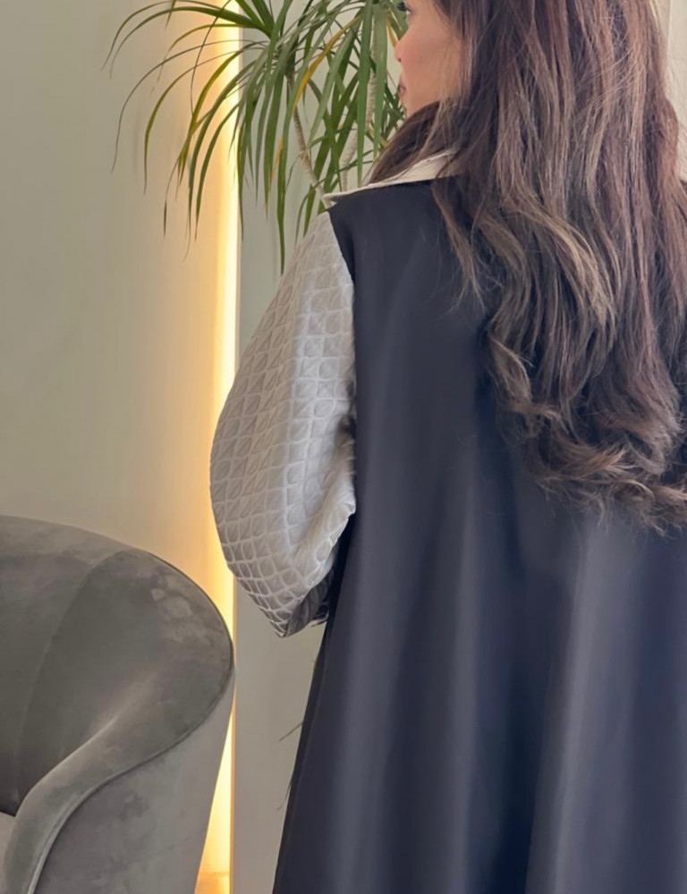 عباية عملية اللون اسود والاكمام تفته بيج