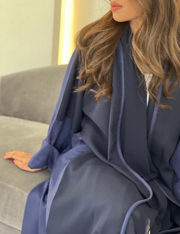 عباية عملية اللون كحلي والاكمام شامواه كحلي