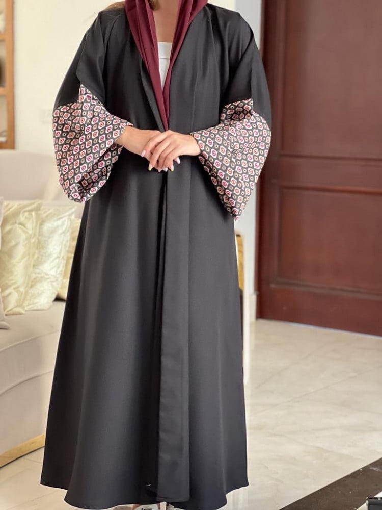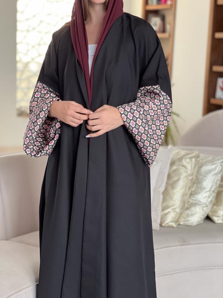 عباية عملية اللون سكري وعلى الأكمام شك (...