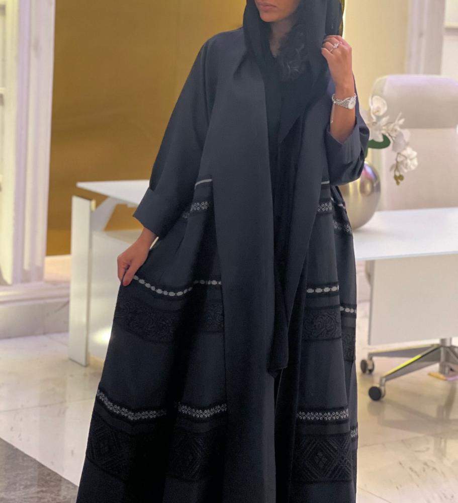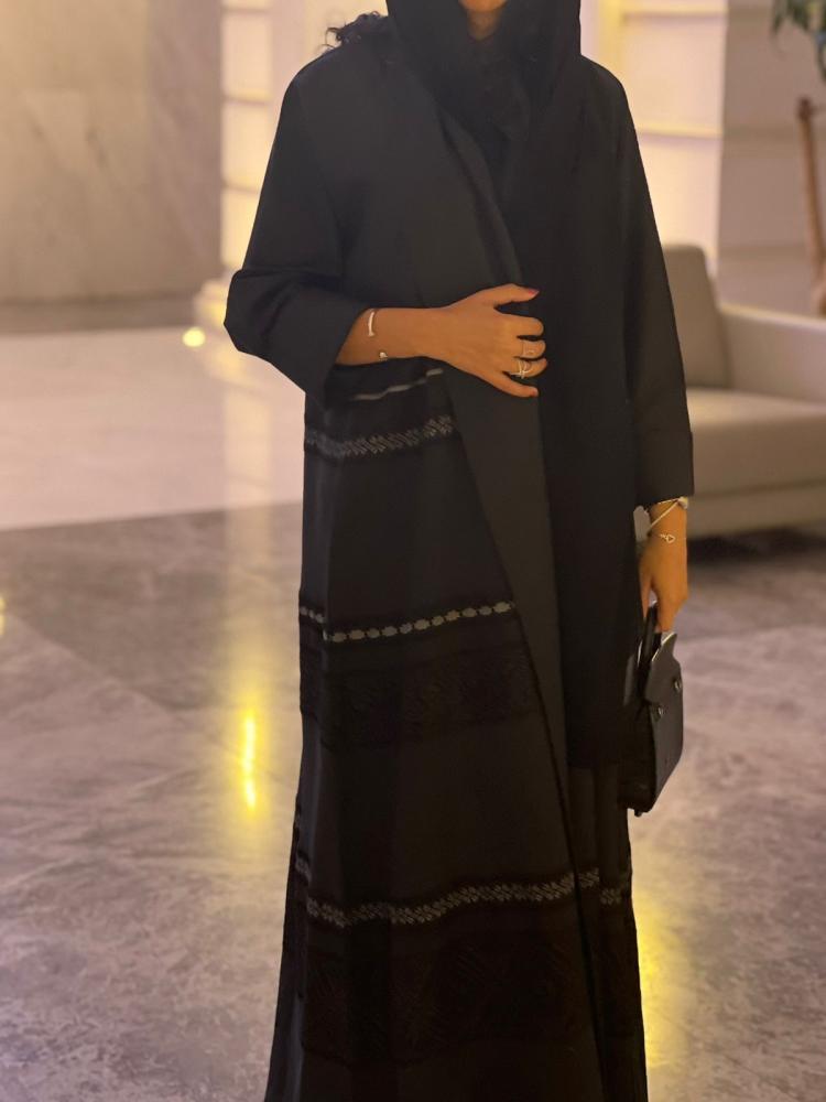 عباية فاخرة القصة كلوش القماش كريب كتان اسود