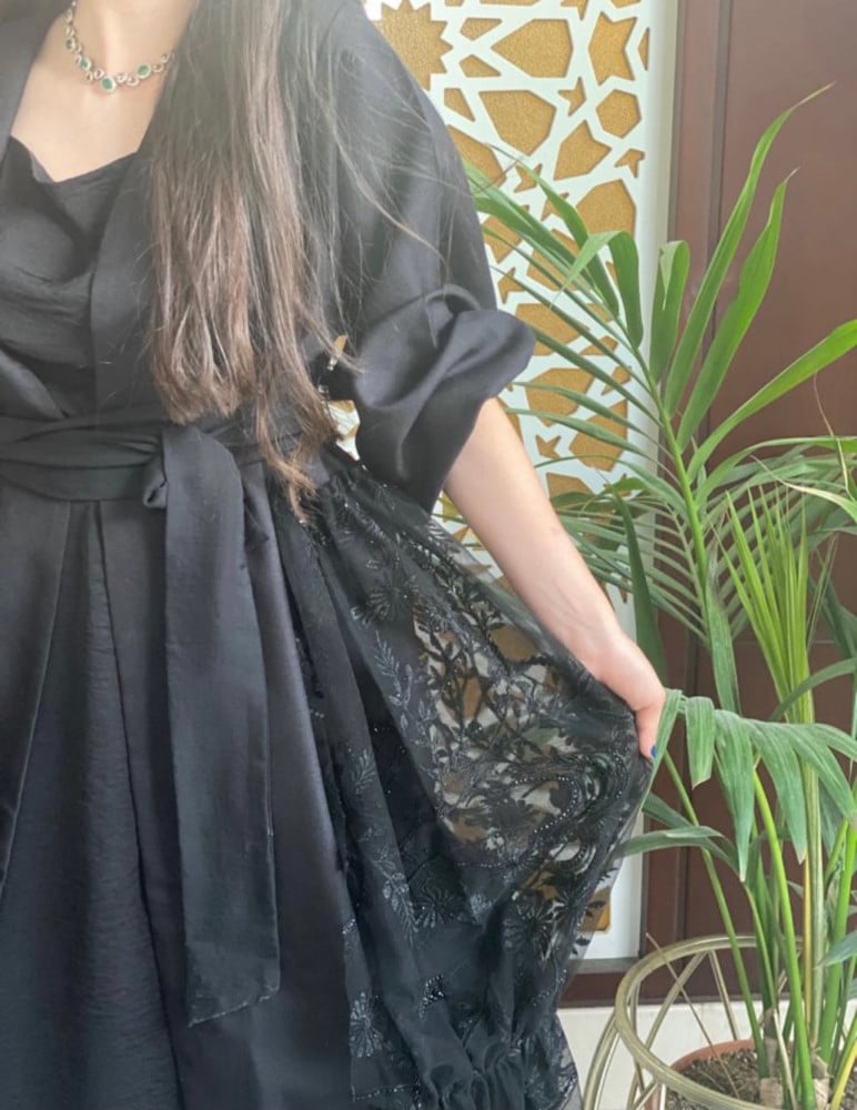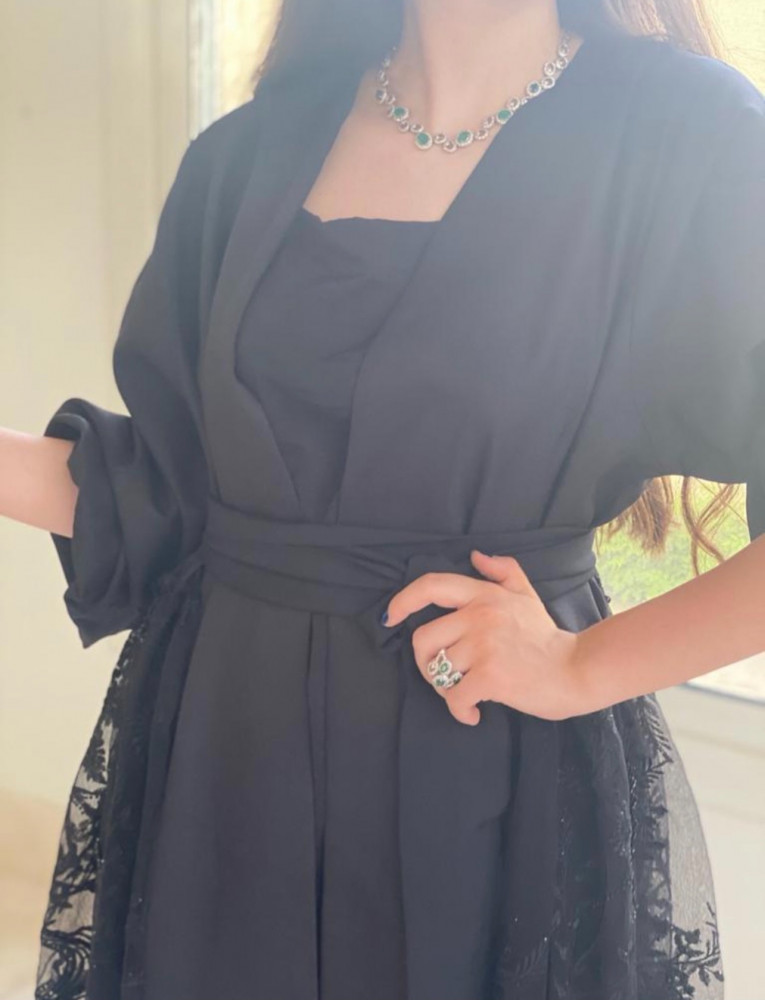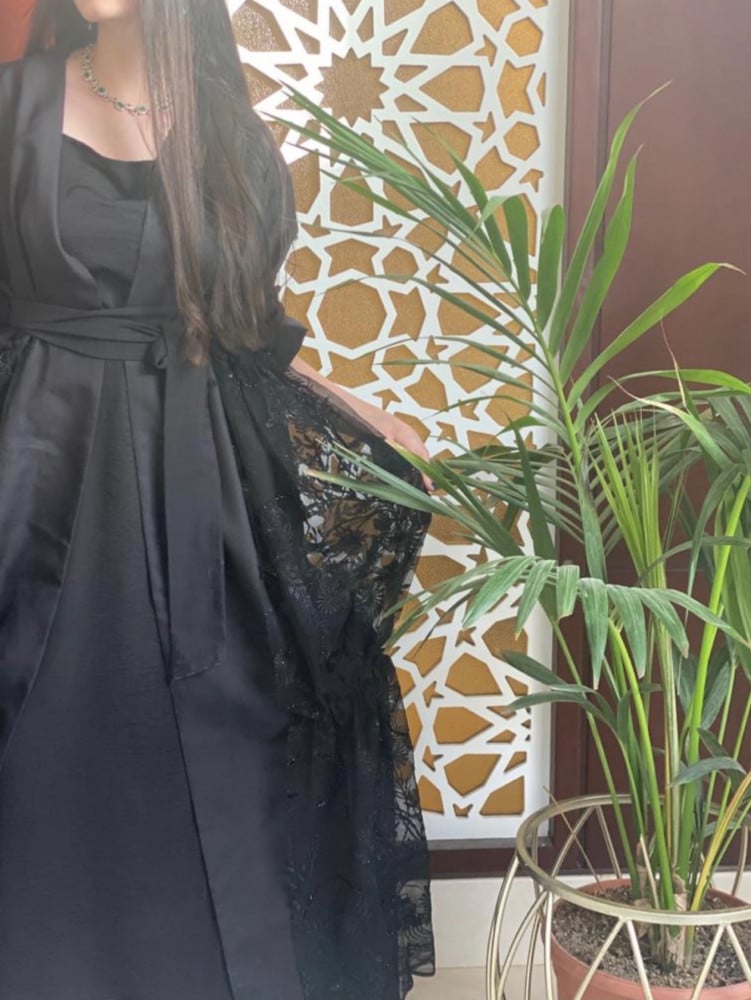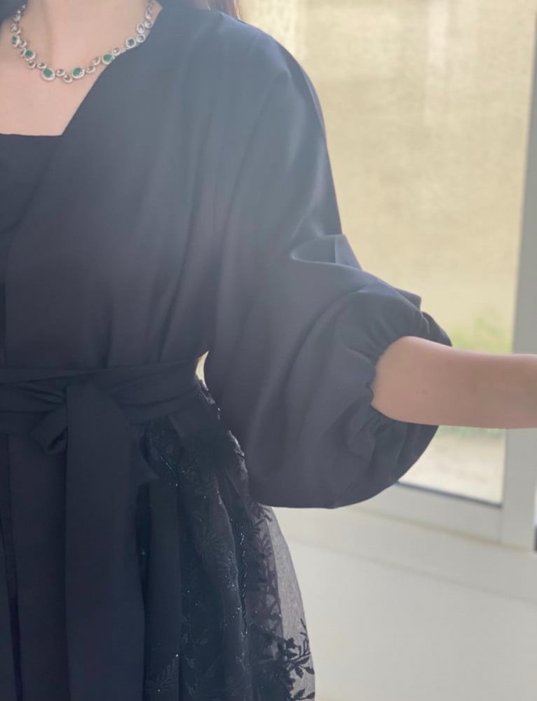 عباية صيفية باردة القماش لنن تيفاني وريش...