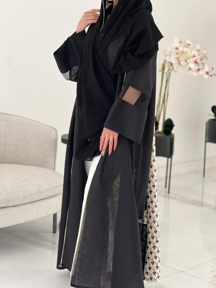 عباية عملية طبقتين اسود وتل عنابي مع شك