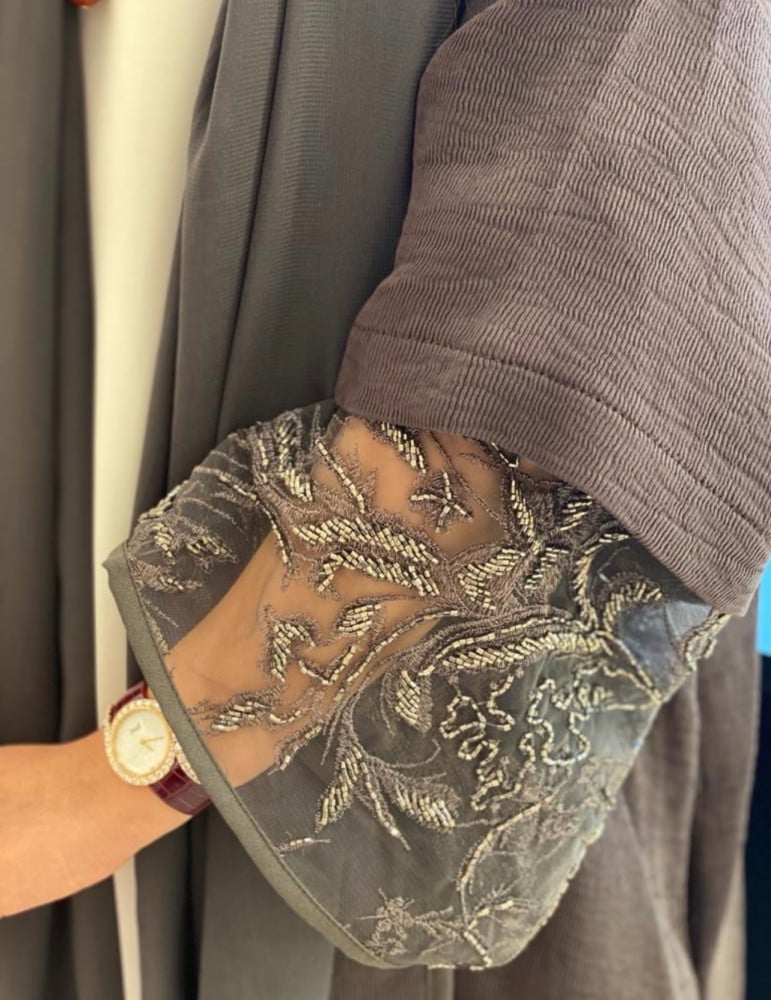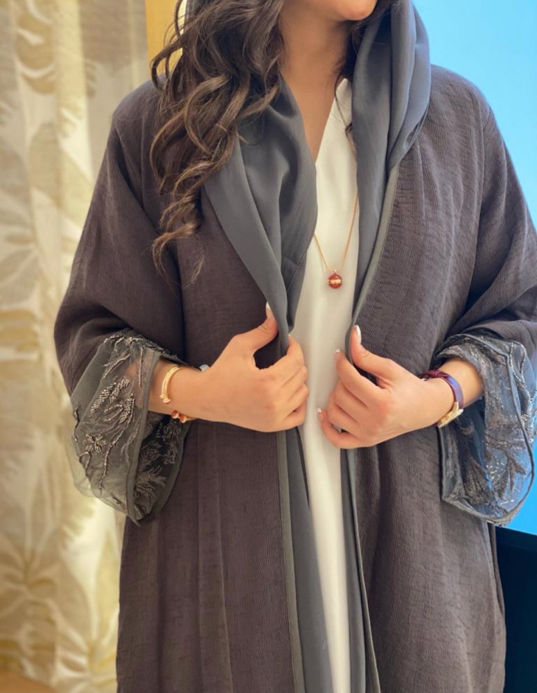 عباية فاخرة القماش مكسر رمادي مع شك رمادي على الأكمام