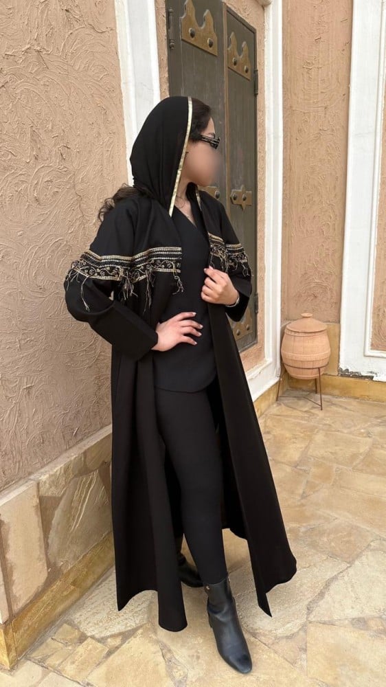 عباية فاخرة اللون اسود مع تطريز ذهبي