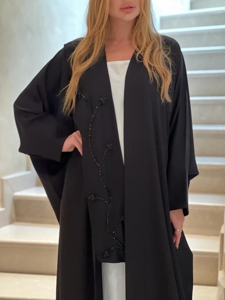 عباية فاخرة القماش كريب حرير اسود مع شك...
