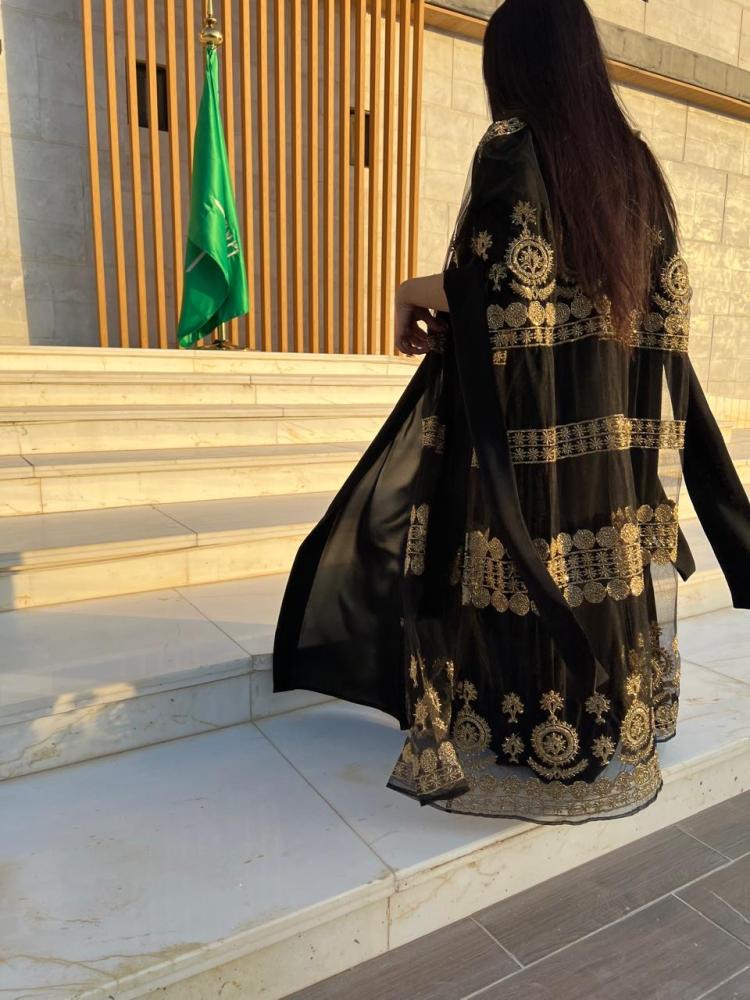 عباية شتوية فاخرة محددة ذهبي القماش كريب...