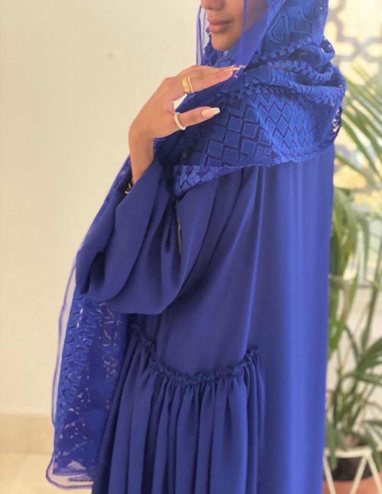 عباية فاخرة القماش كريب كتان اسود مع سكر...