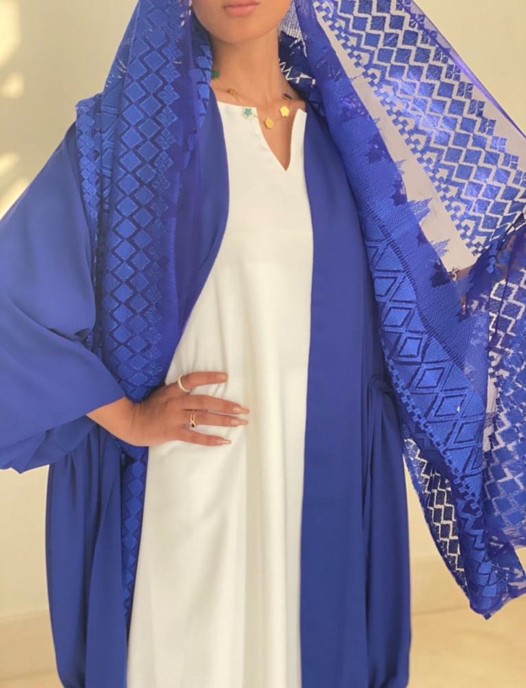 طقم 5 قطع ( عباية لنن ابيض - تل ابيض - ف...