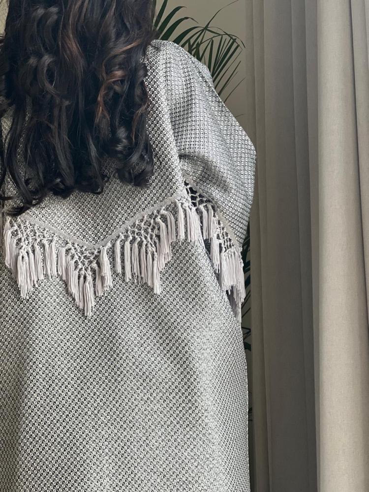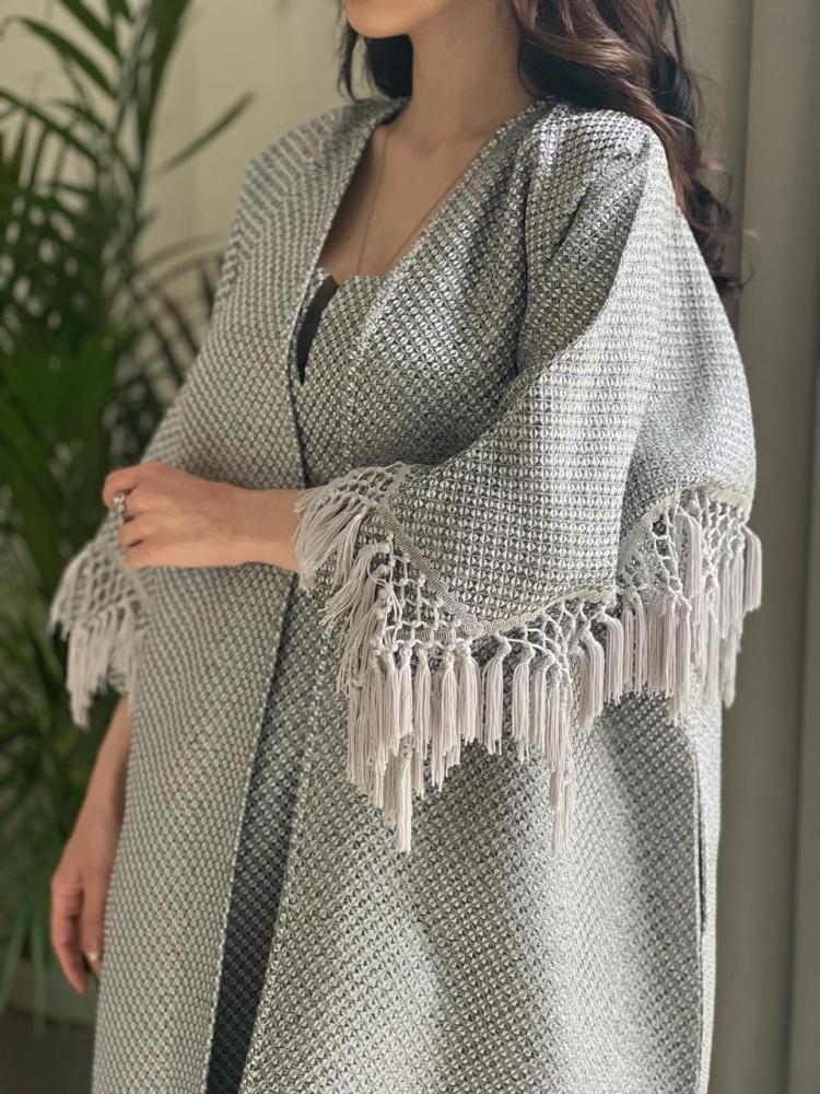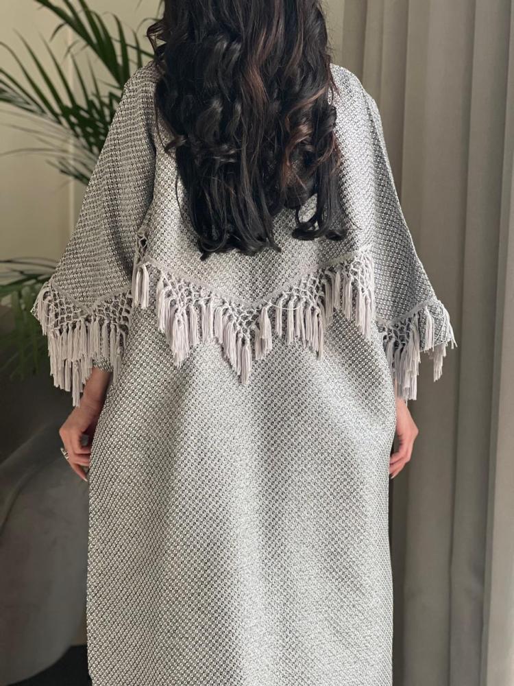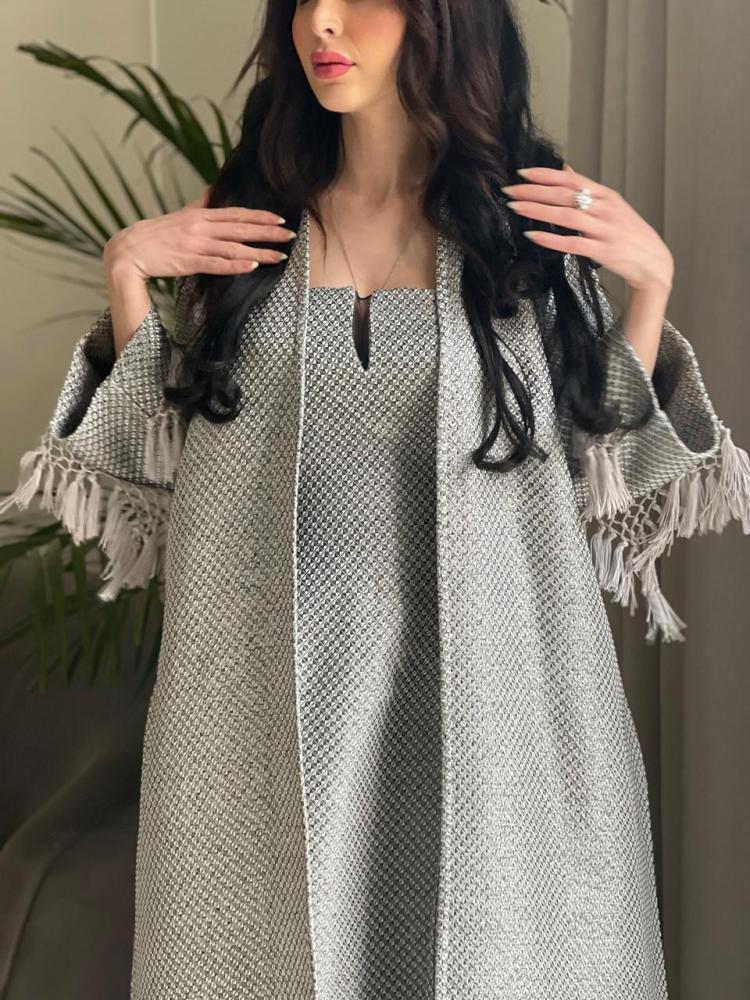 عباية فاخرة اللون رمادي مع تفاصيل مميزة