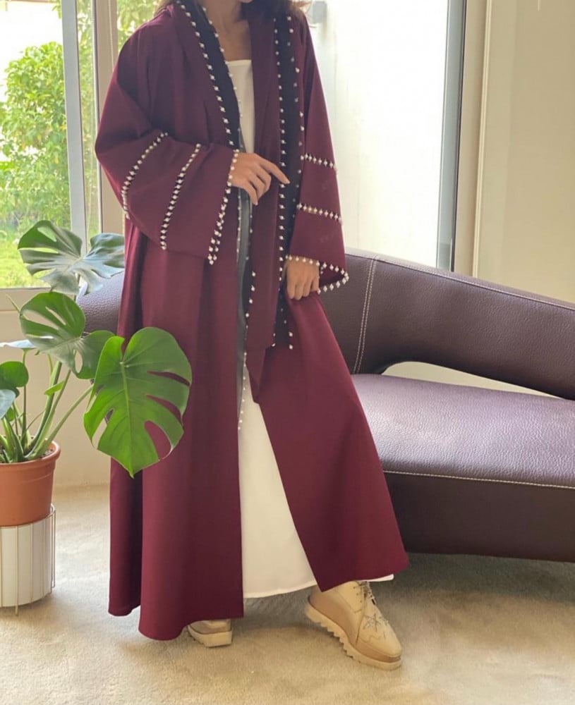 عباية فاخرة اللون عنابي مع شك لولو