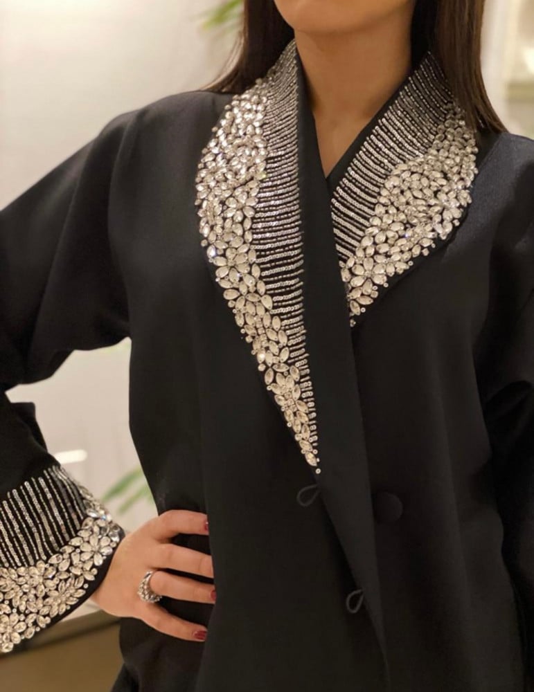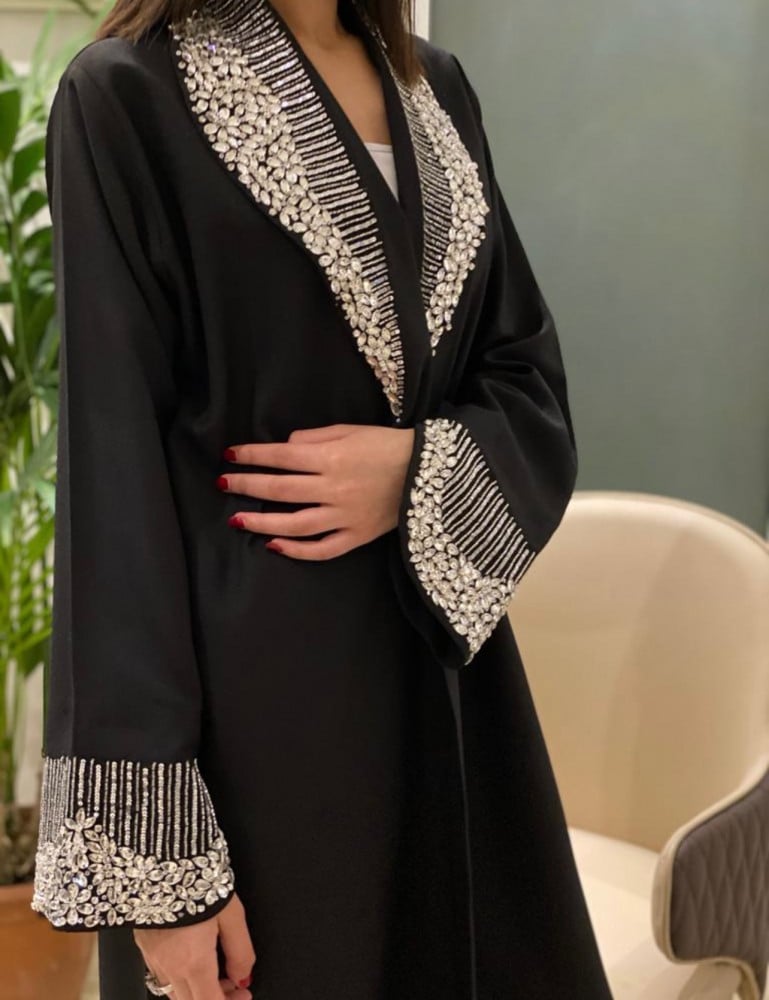 عباية مميزة القماش تفتة اسود وتقفل بسحاب