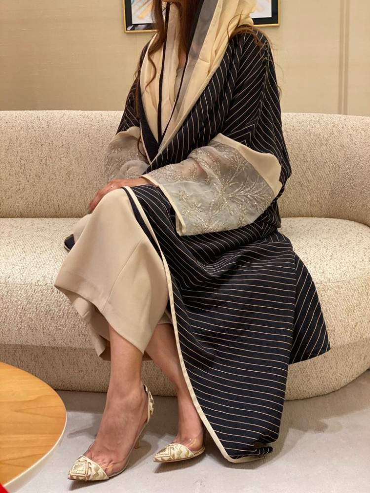 طقم عباية فاخرة ( عباية القماش لنن اسود...