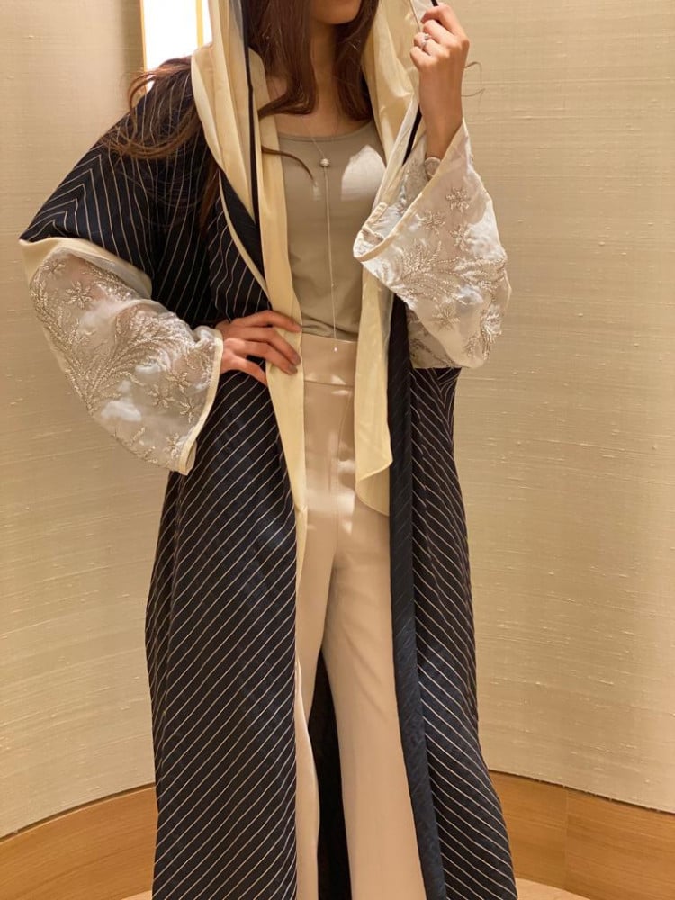 عباية فاخرة اللون رمادي مع اسود وعلى الا...
