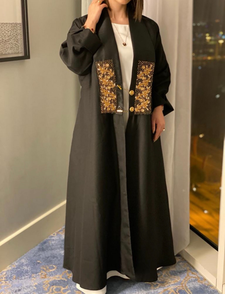 عباية فاخرة ومميزة الون اسود وعلى القبه شك ذهبي